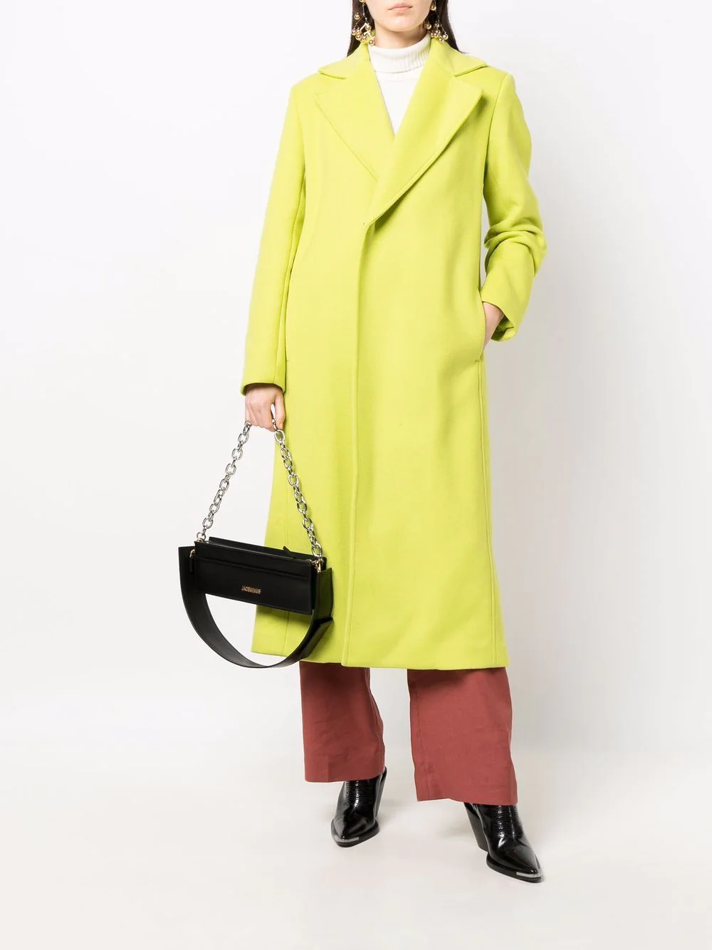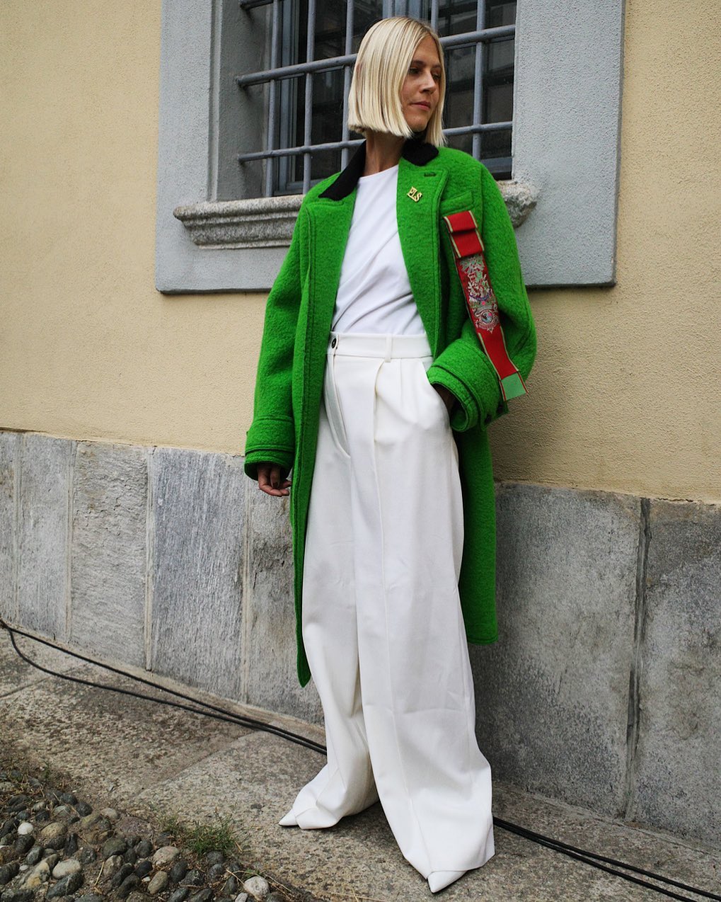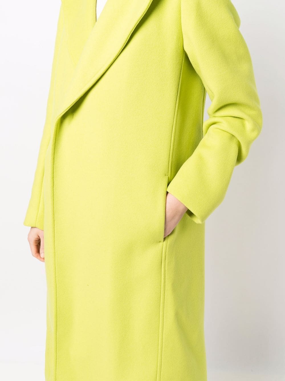 Творческий дух Массимо Джорджетти сочетает в себе традиции итальянского портного искусства и обязательно – современные элементы. Высокий уровень качества в дополнении со всегда яркими коллекциями – конкурентное преимущество бренда. В этом сезоне бренда предлагает удлиненное пальто прямого кроя с зубчатыми лацканами в цвете зеленого лайма – отличное разнообразие привычным тонам осени.