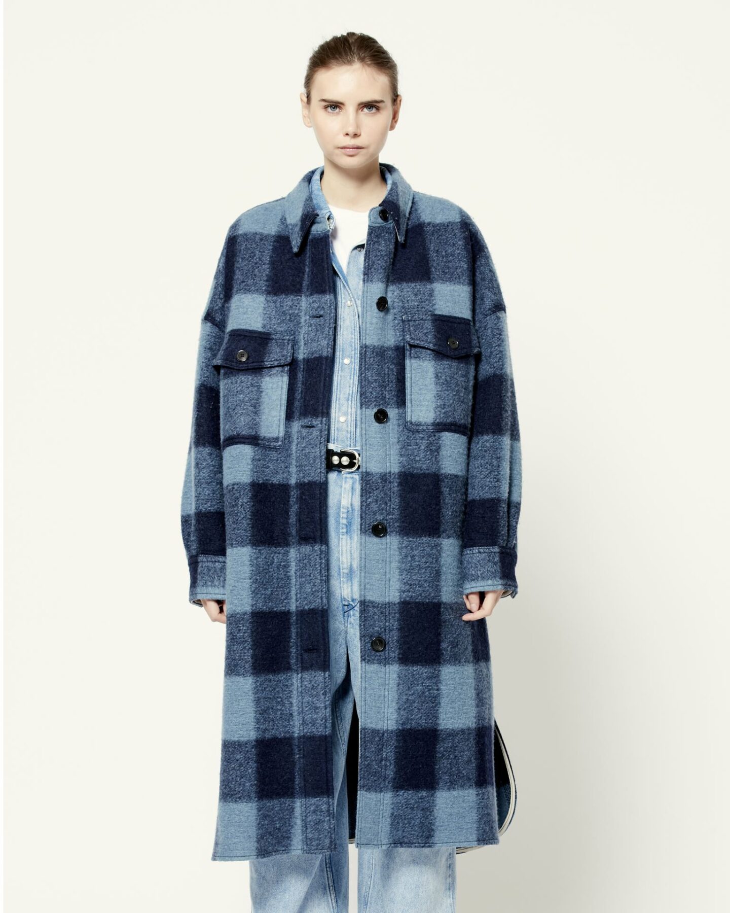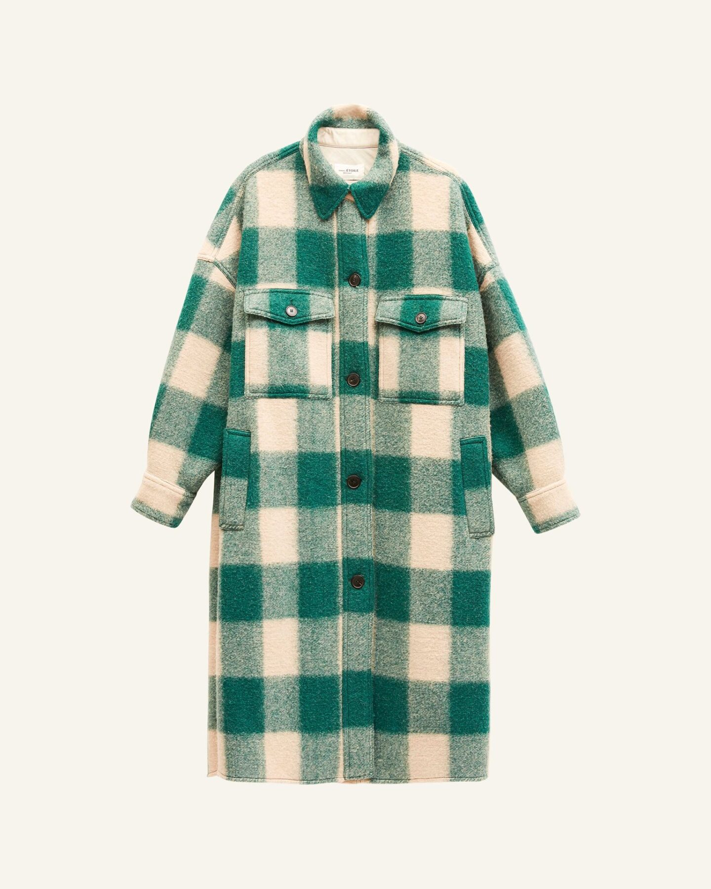 Étoile – молодежная линия французского бренда Isabel Marant. Дизайнер Изабель Маран описывает этот стиль, как «бохо и немного французского шарма». Все коллекции бренда ориентированы на современных девушек, которые не боятся экспериментировать с цветами и фактурами. Клетчатое пальто, созданное по типу удлиненной рубашки изготовлено из смеси шерсти и полиэстера. Такая модель идеально впишется в гардероб тех, кто предпочитает спорт-шик и бохо.