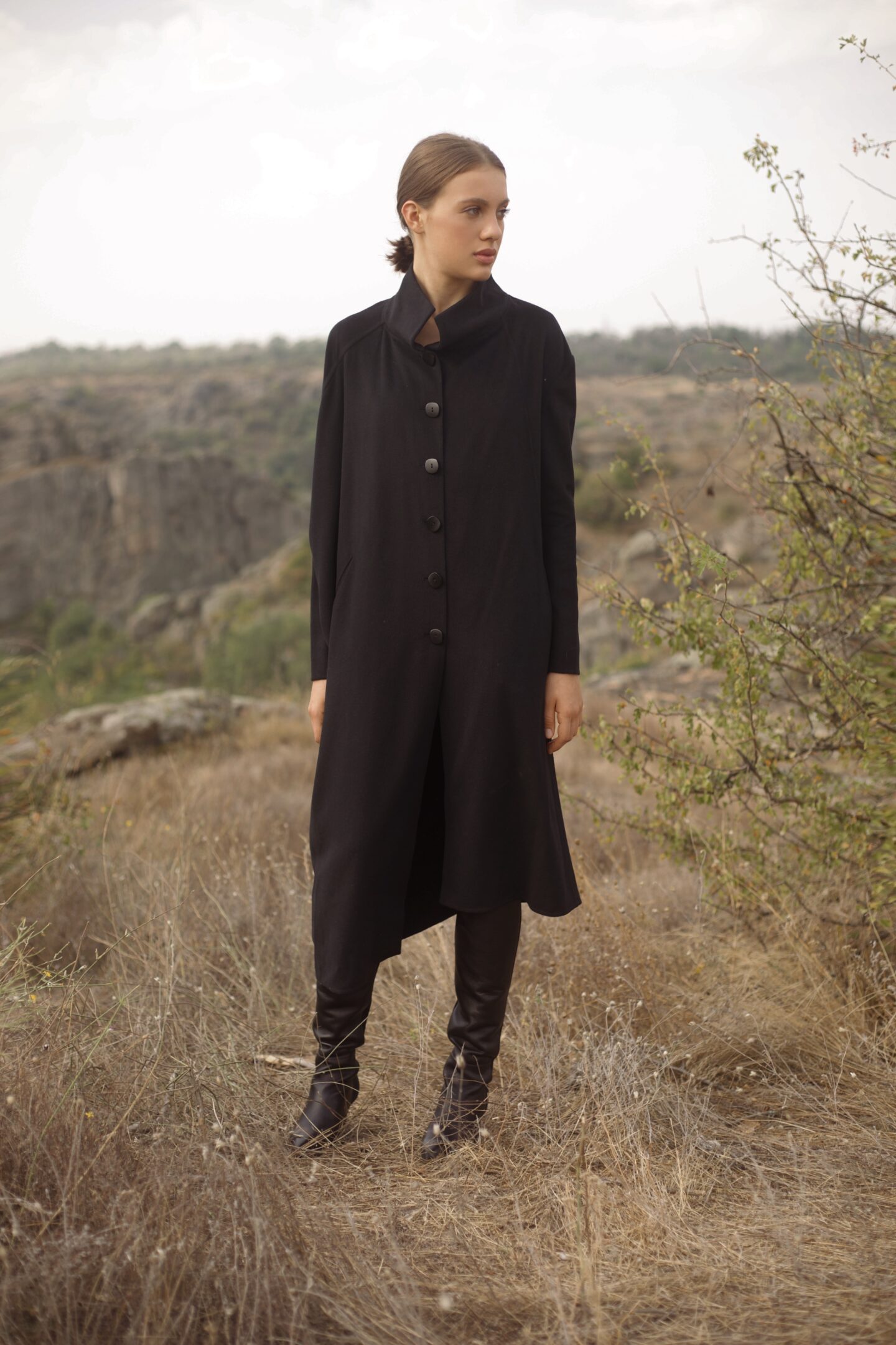 Украинский бренд, основанный в 2015 году дизайнером Катей Тимошенко. Вся одежда изготавливается на собственному швейном производстве в Киеве. На первый взгляд, вещи марки кажутся довольно простыми. Но присмотревшись, замечаешь, что в простоте кроя и форме присутствуют необычные элементы, что придает изделиям уникальность и шик. На украинскую осень марка предлагает удлиненное пальто классического кроя, выполнено из 100% вирджинской шерсти (шесть с живых овец). Поверхность ткани обработана водоотталкивающим материалом, что очень уместно для дождливой осени. Такая модель отлично впишется и в деловой гардероб в сочетании с брючным костюмом, и в повседневный – с джинсами.