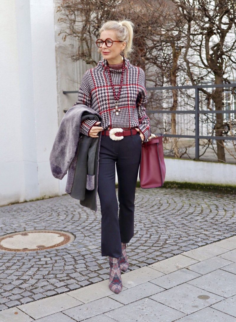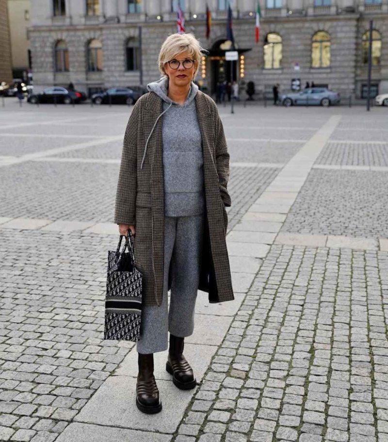 Осторожнее в вязаными вещами. Они часто ассоциируются со старушками, а не с элегантными пожилыми леди. Исключение составляют однотонные свитера и кардиганы.
