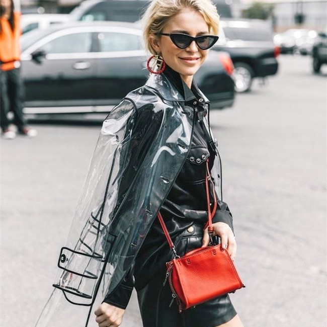 Пальто и плащи из винила – экстравагантная альтернатива классическим тренчам. Надев их, вы будете в моде. Винил надежно защищает от дождя и ветра. Rejina Pyo, Fendi активно используют современный материал в коллекциях. Adeam, Escada считают, что функциональные вещи должны быть яркими. Длинные оранжевые пальто от Kate Spad подтверждают эту идею. Sies Marjan, Christian Cowan тоже не удержались от экспериментов с прозрачными деталями из пластика.