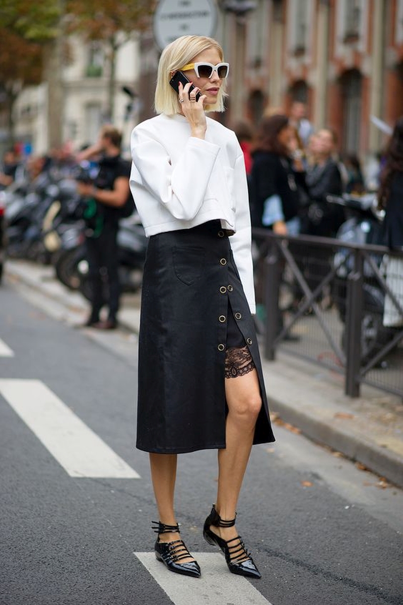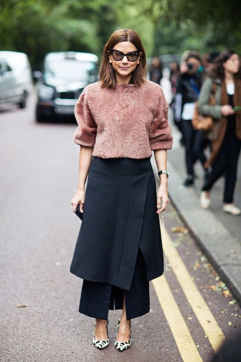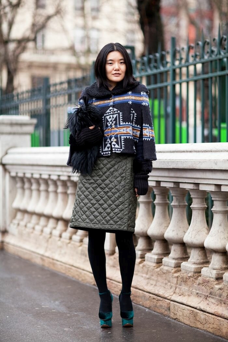 Как же не замерзнуть в этом случае? Ответ прост: составить модный многослойный лук из нескольких юбок разной длины или надев короткую юбку поверх более длинного платья.