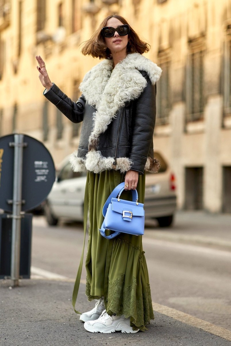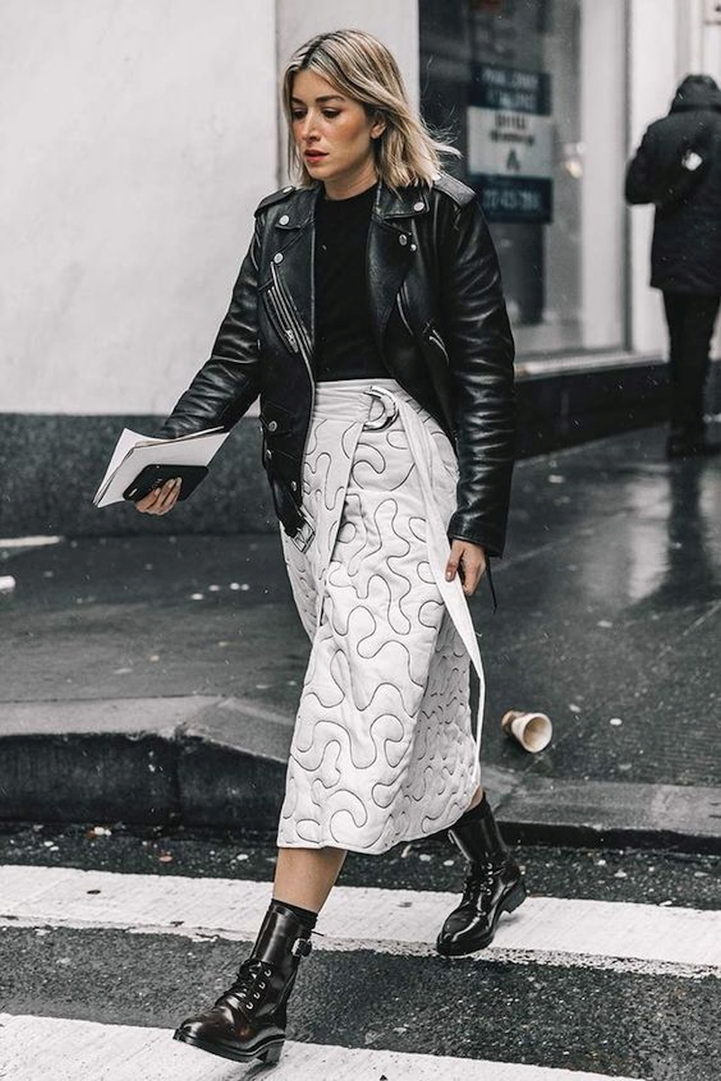 С наступлением холодов большинство женщин предпочитают носить более практичные и теплые брюки и леггинсы. Однако и модные юбки осенью и зимой не дадут замерзнуть, одновременно позволив выглядеть даже в эту пору женственно и стильно. Теплые и плотные материалы (шерсть, кожа, твид, вельвет) в тандеме с основными трендами (длина макси, многослойность, стежка) сделают наряд теплым и стильным.
