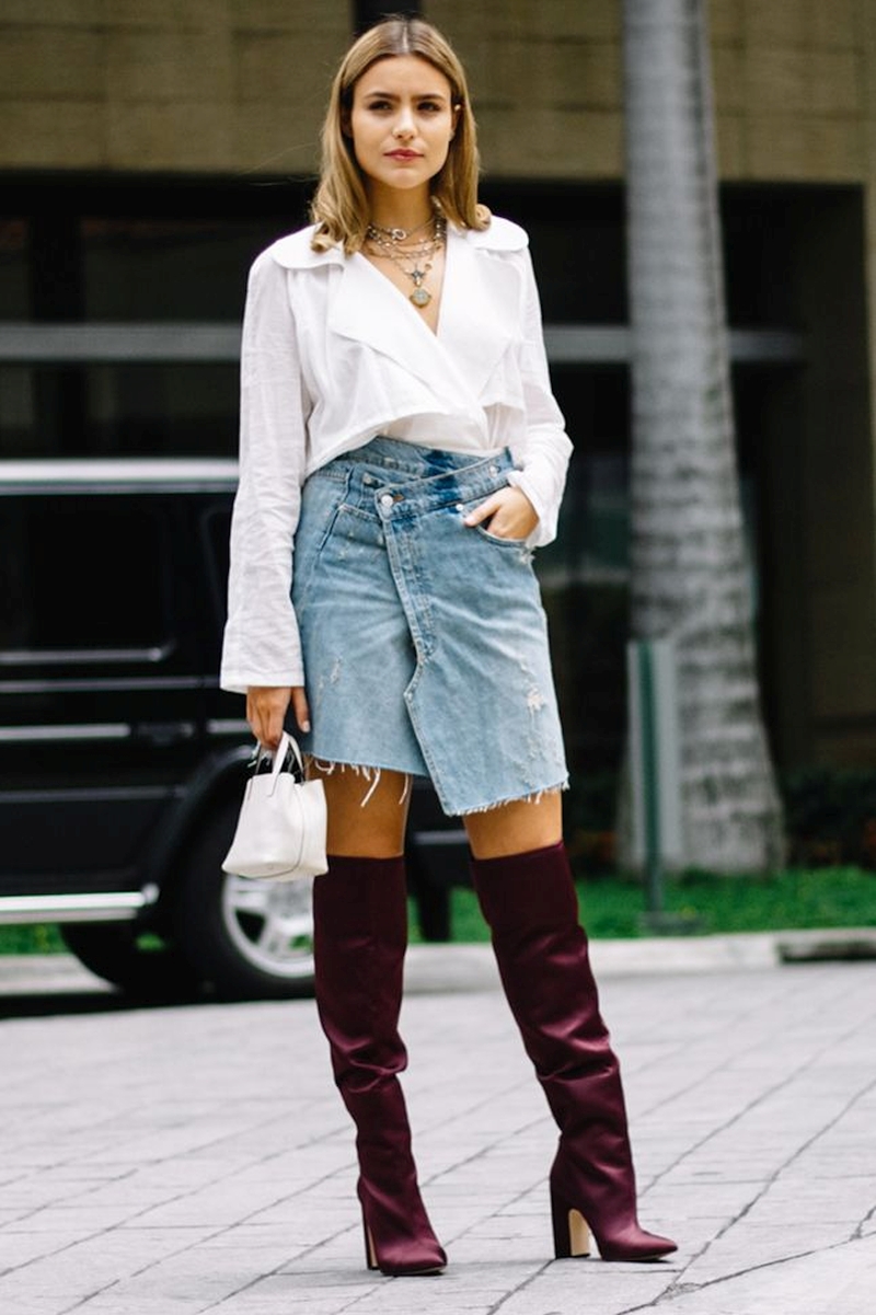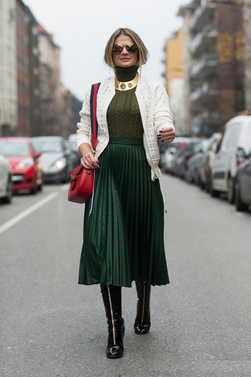 Какую выбрать обувь, будет зависеть от длины юбки. Так, макси и миди можно носить с туфлями, полусапожками и высокими сапогами, а в мини будет тепло, если на ногах будут ботфорты. Исключение из этого правила – короткая кожаная юбка, которая с высокими сапогами будет выглядеть вульгарно.