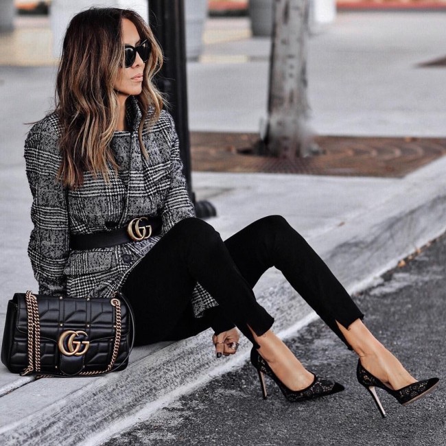 - всевозможные ремни (в основном, широкие с заклепками и перфоацией). Сейчас модно оставлять у ремня длинный “хвост”, поэтому не спешите обрезать его, если он кажется велик. Хотите создать стильный лук с пальто? Замените обычный пояс пальто-халата на кожаный ремень. Получится интересно и неизбито.