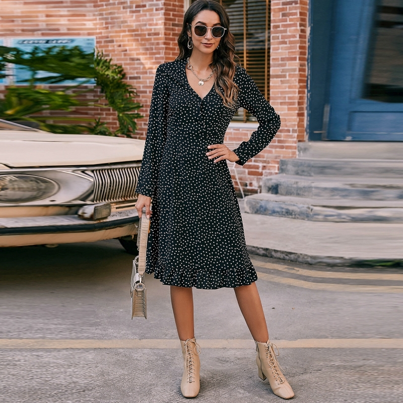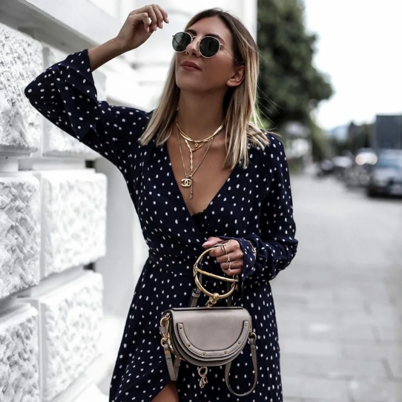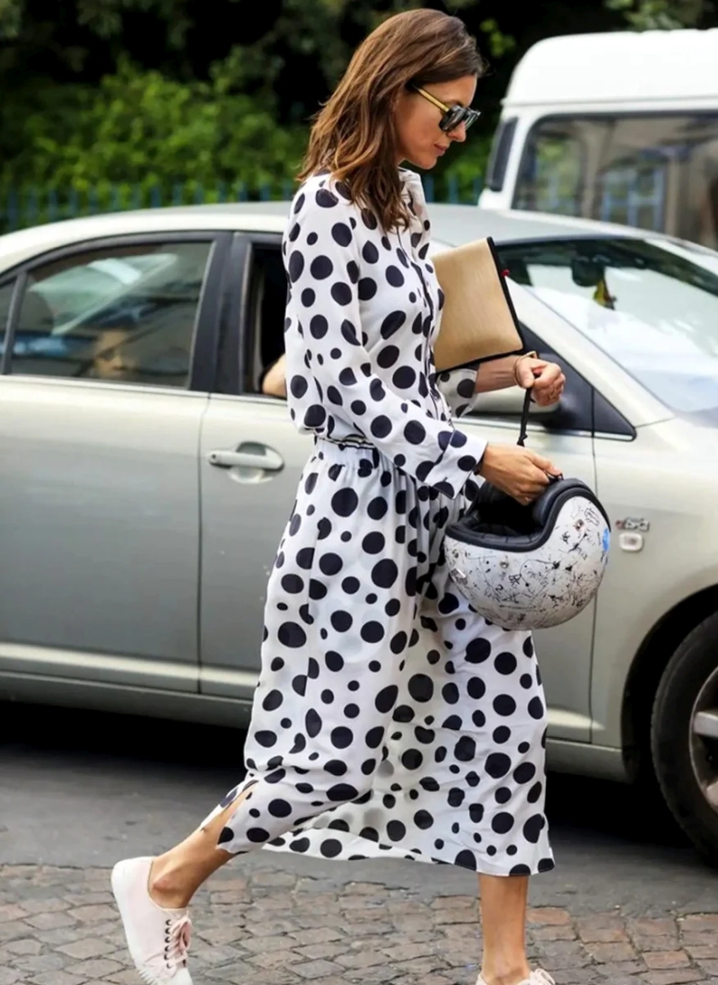 Такая популярность объясняется тем, что платья в горошек подходят как для молодых девушек, так и для женщин после 50. Они уместны на многих мероприятиях. С polka dots можно создавать деловые образы, романтичные и кокетливые наряды для свиданий, прогулок и отдыха, а также эффектные луки для модных выходов в свет.