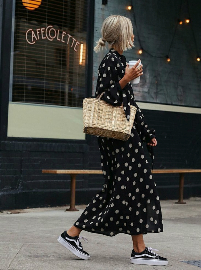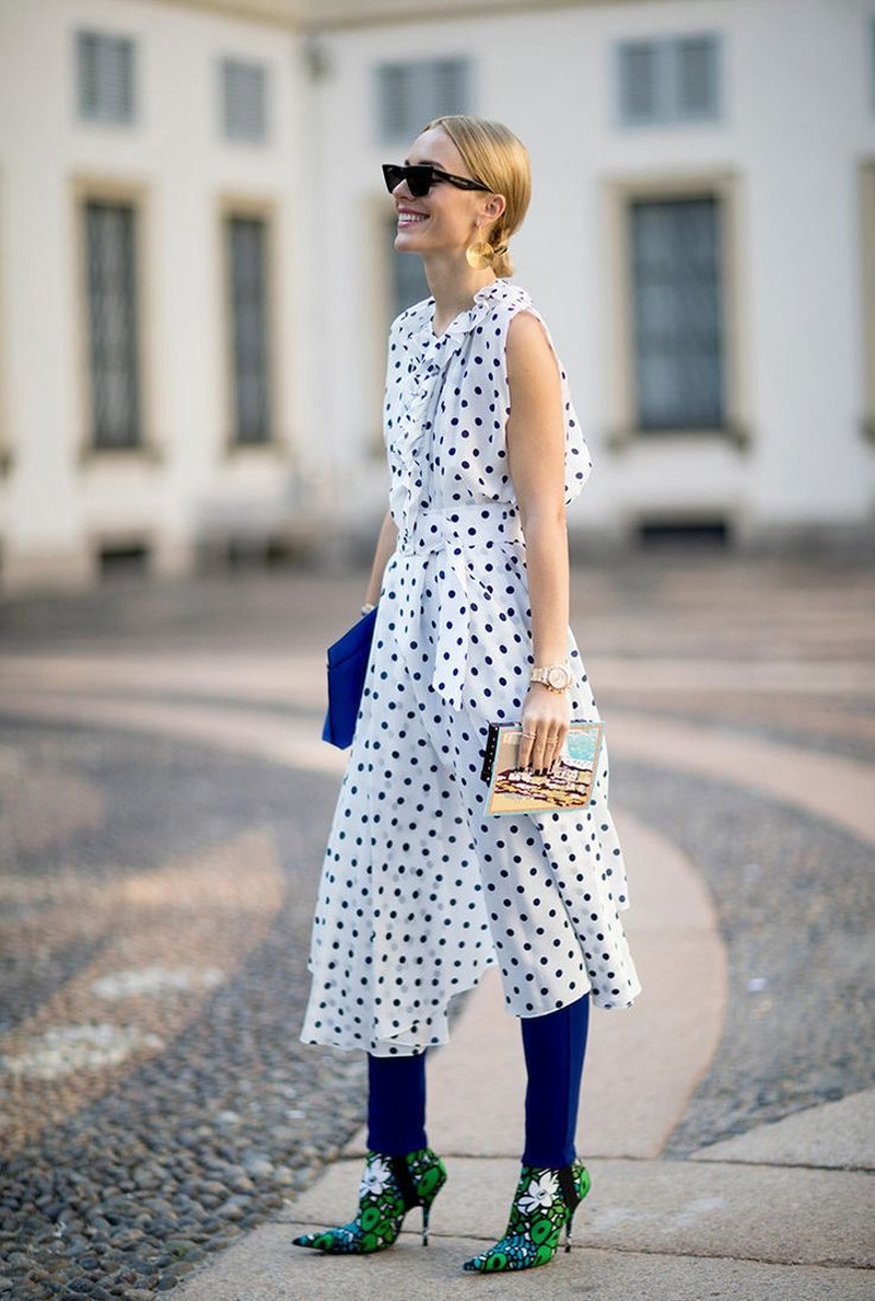 С чем носить платье в горошек?