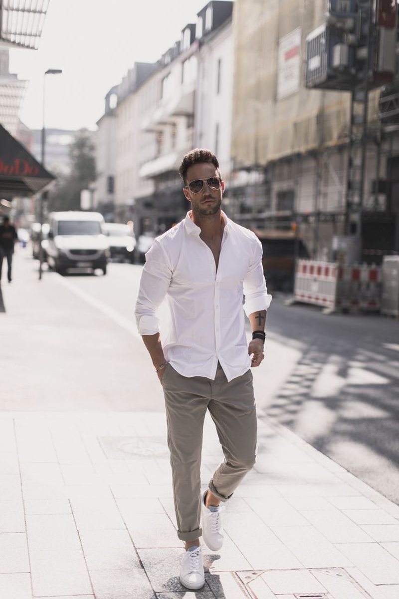 Изначально мужчины закатывали рукава на рубашках исключительно ради удобства, ведь не всегда делать что-то руками удобно, когда кисти рук зафиксированы манжетами рубашки. Позже закатывание рукавов стало символом того, что мужчина готов перейти от слов к делу, а в мужской моде 2022 это будет стилевым решением, как вписать классическую рубашку в стиль кежуал. Такой эффектный прием с рукавами позволит продемонстрировать удобство и непринужденность – основные черты расслабленного кежуал.