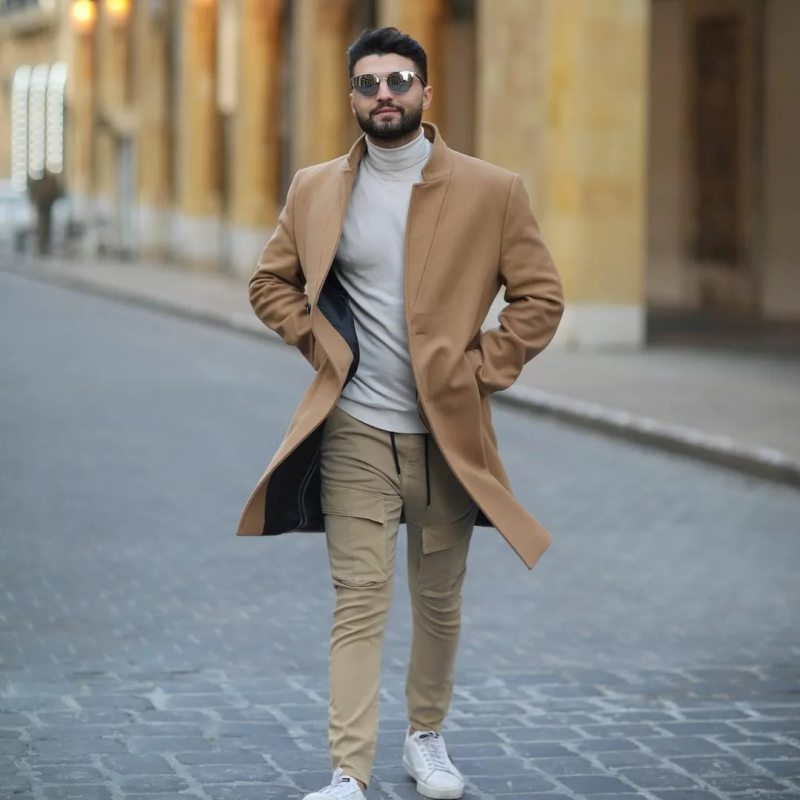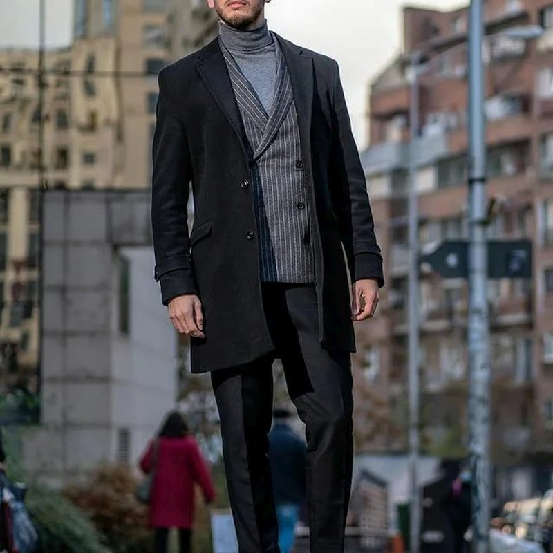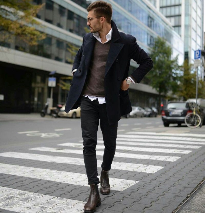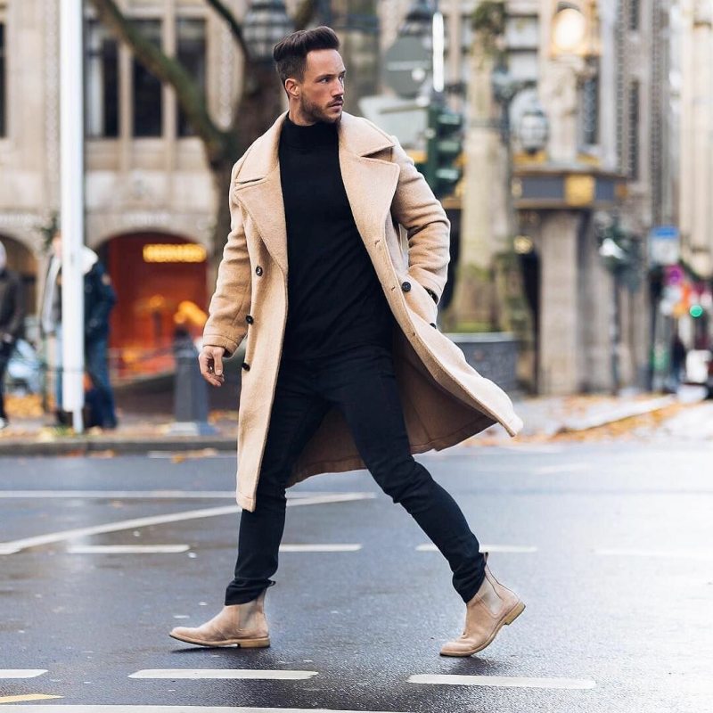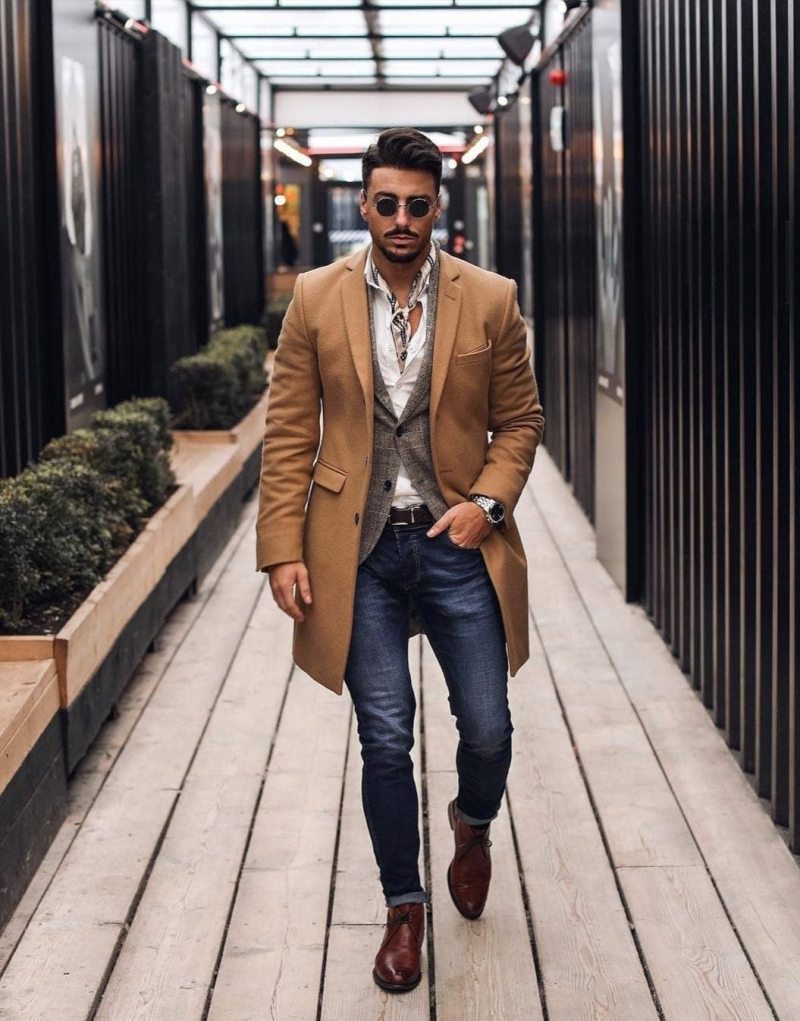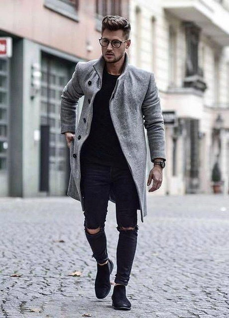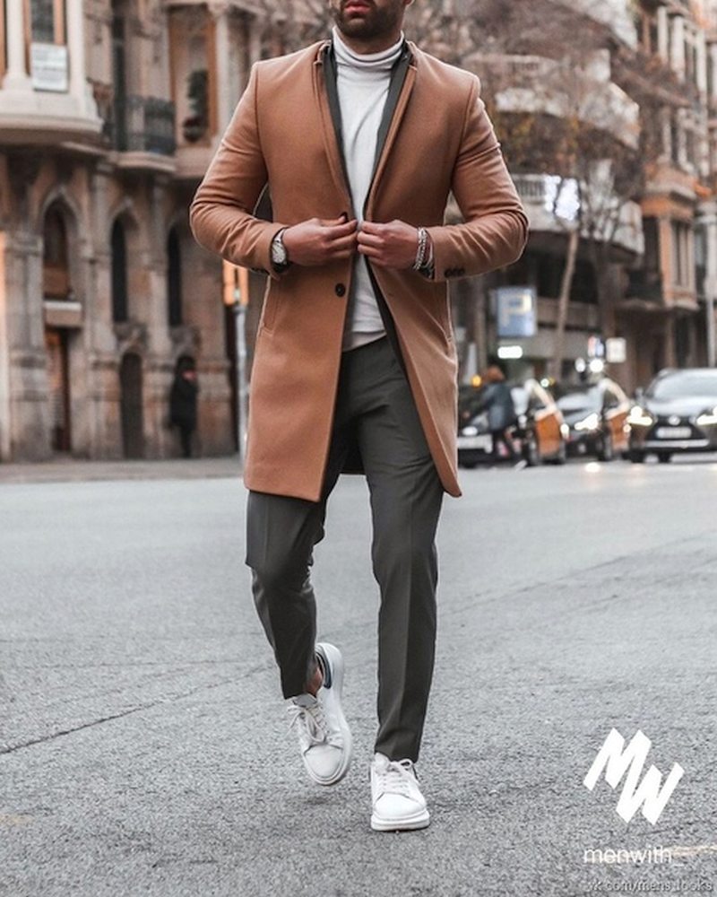 Оптимальная длина этого предмета гардероба – от середины бедра до колена. Полупальто можно сочетать с любыми брюками, кроме спортивных. Такая длина поможет визуально скинуть несколько лет мужчинам в возрасте, а молодым парням добавит серьезности и деловитости.