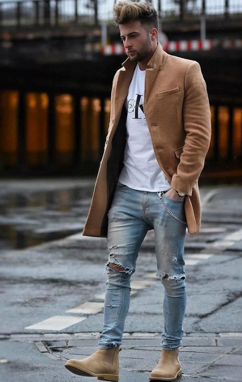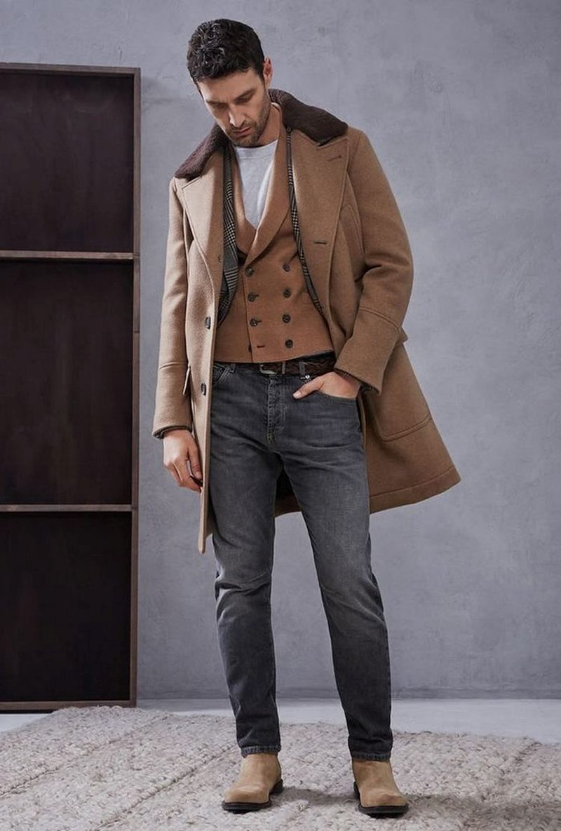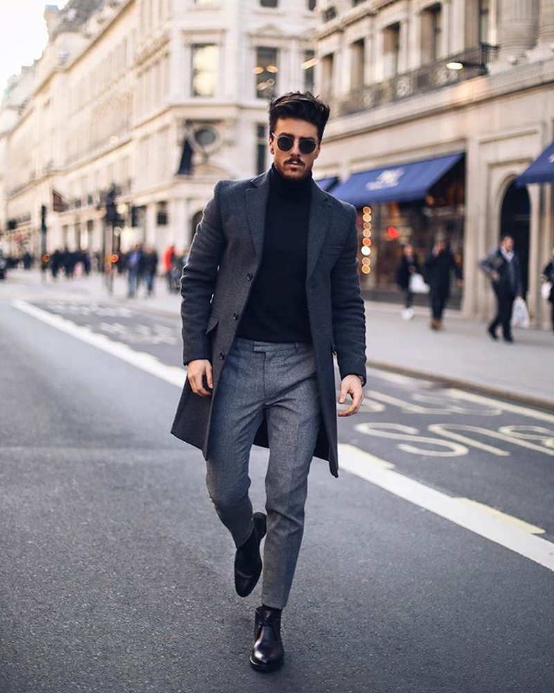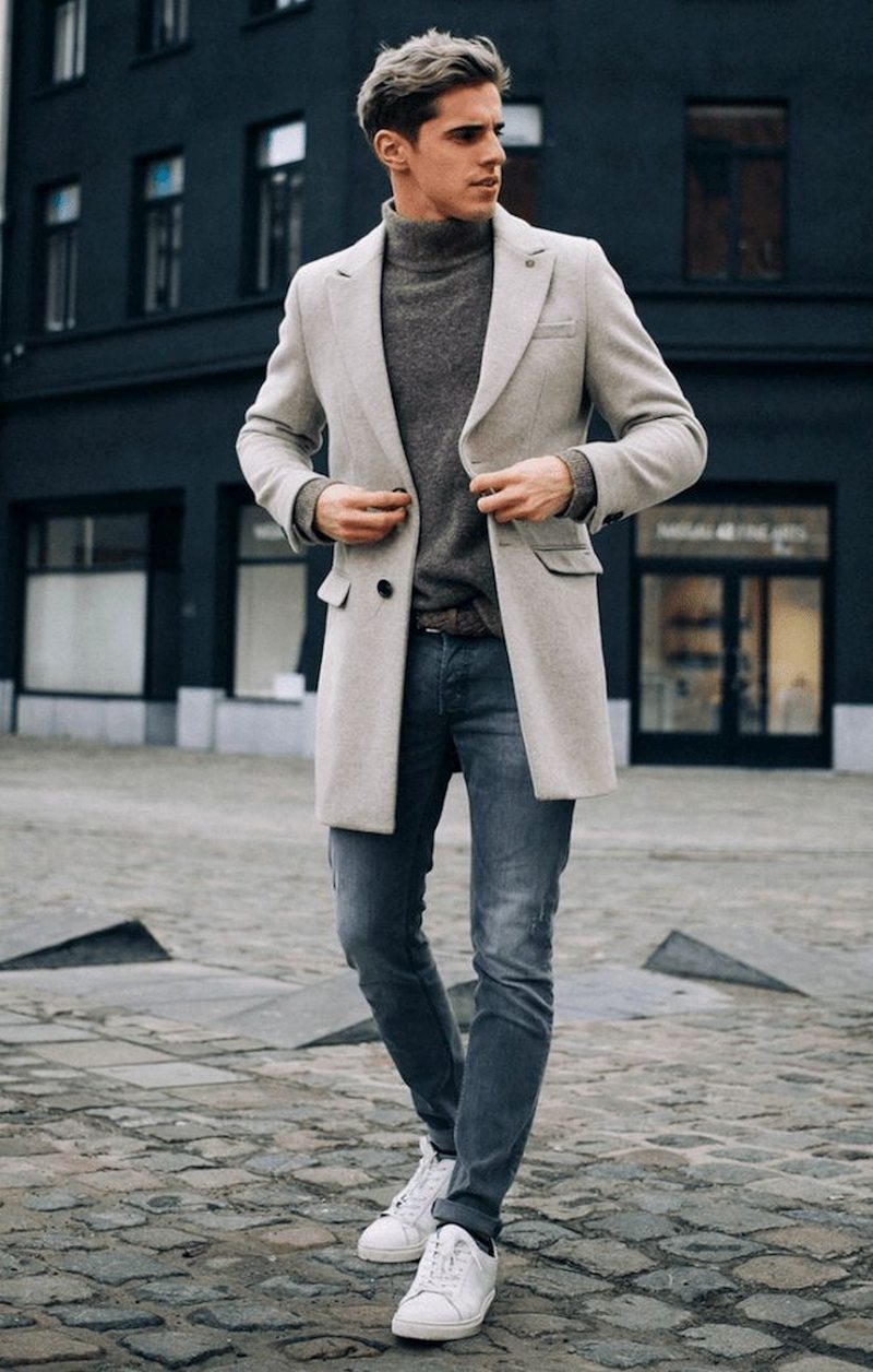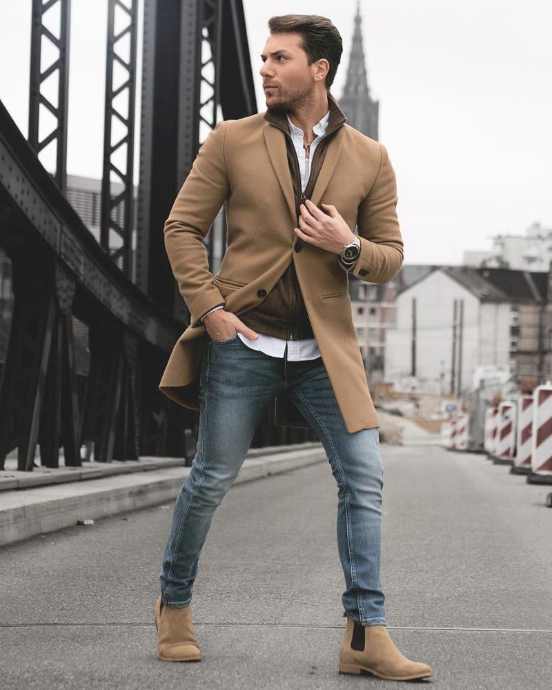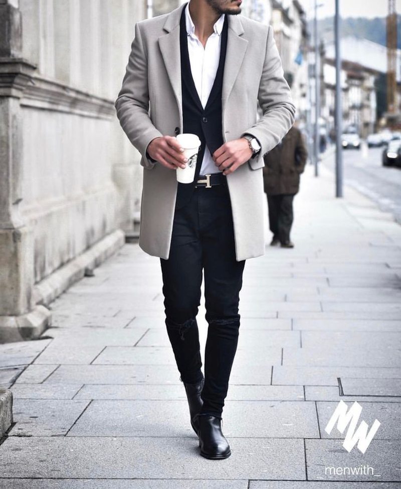 Оптимальная длина этого предмета гардероба – от середины бедра до колена. Полупальто можно сочетать с любыми брюками, кроме спортивных. Такая длина поможет визуально скинуть несколько лет мужчинам в возрасте, а молодым парням добавит серьезности и деловитости.
