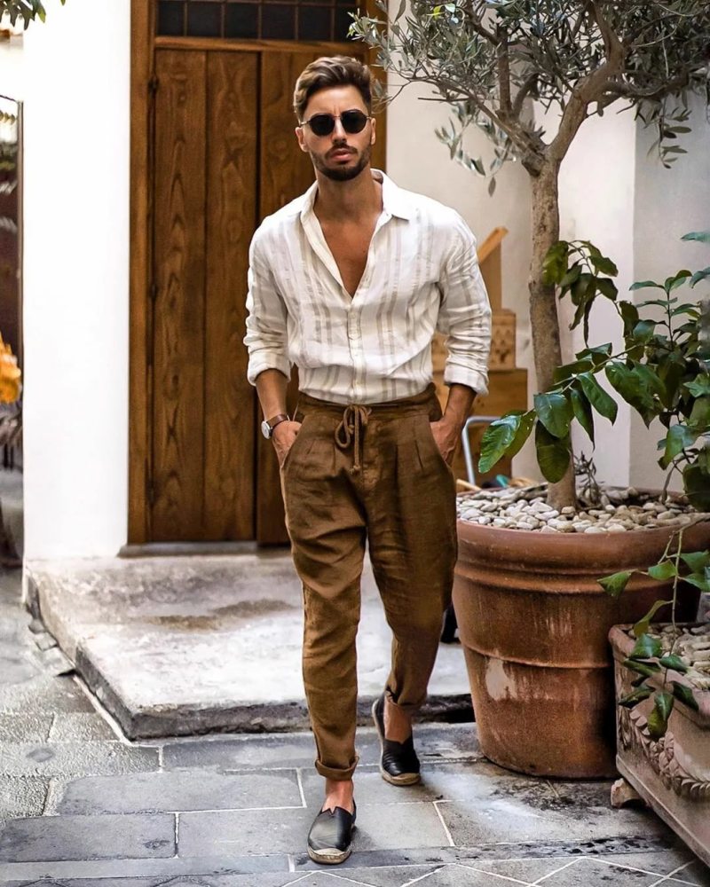 В основном одежда пастельных тонов представлена классическими рубашками, которые надевают вместе со строгими костюмами. Однако, мужская мода 2022 ориентирована на использование пастели во всех предметах гардероба. Чтобы в наряде приглушенного цвета не выглядеть блекло, следует разбавить образ яркими акцентами. Это могут быть хоть солнцезащитные очки, хоть темные контрастные пуговицы.