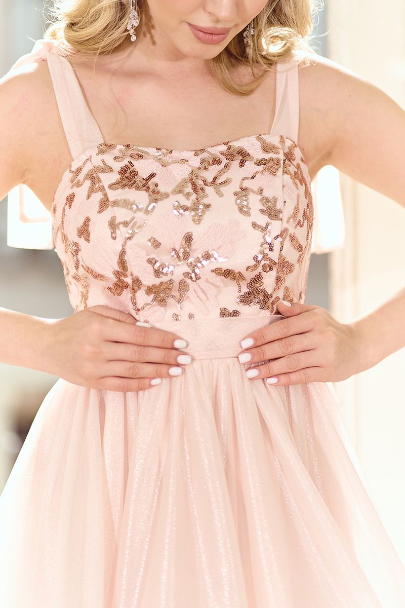 Персикова Архітектурна коктейльна сукня з вишитим корсетом 26010 — це поєднання м’якої романтики та продуманої конструкції. Теплий персиковий відтінок виглядає ніжно, освіжає образ і додає шкірі сяйва, а архітектурний крій формує витончений силует. Ідеальний вибір для випускного 2026, святкових подій або особливих вечорів.