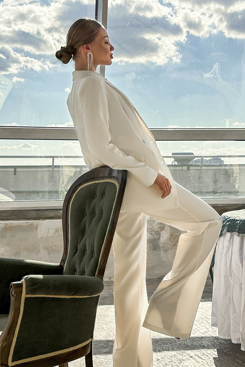 Молочний брючний костюм “Urban Elegance” стане чудовим вибором для: