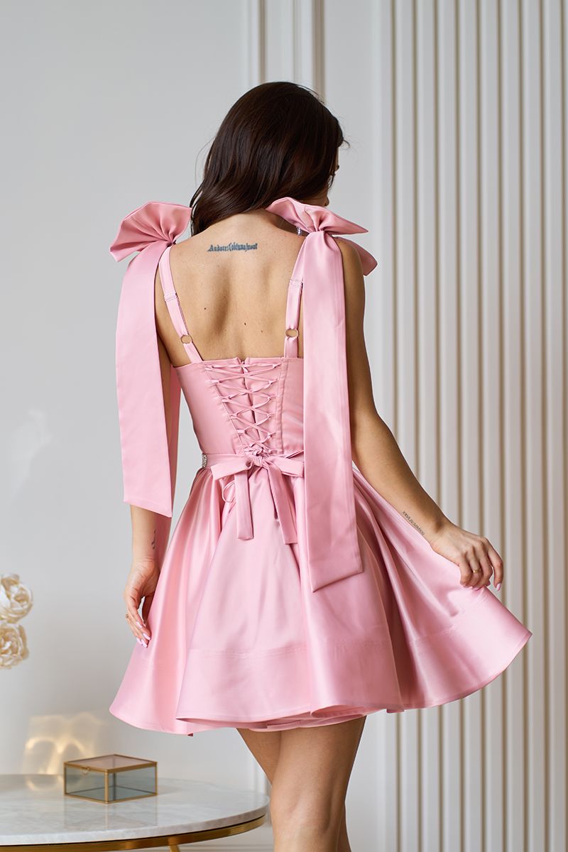 Замовляйте свою Рожева Коктейльна Сукня Банти Атлас 25028 прямо зараз та створіть образ, який запам’ятають усі.