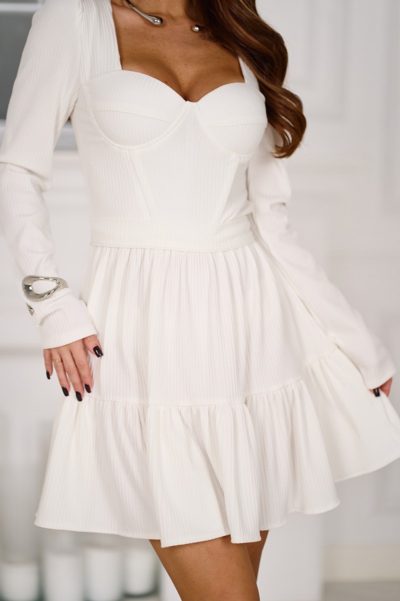 Молочна Коктейльна сукня корсет трикотаж рубчик 25093 — це поєднання романтичної витонченості та актуального мінімалізму. Сукня створена з м’якої трикотажної тканини ангора в рубчик, яка приємна до тіла й гарно тримає форму. Корсет із чашками та кісточками формує спокусливий силует, підкреслюючи зону декольте та талію. Спідниця з воланом додає легкості образу, а пасок із тканини акцентує фігуру. Потайна блискавка по спинці забезпечує зручність при вдяганні.