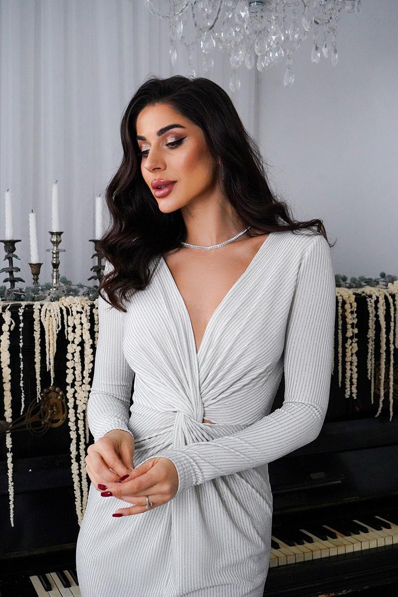 Для максимального ефекту носіть цю сукню з високими підборами та аксесуарами зі сріблястим блиском, як-от чокер або витончені сережки. Цей наряд ідеально підходить для вечірніх виходів, де потрібно виглядати елегантно і спокусливо. Завдяки люрексовому матеріалу ви будете виглядати неперевершено в світлі софітів або на фотографіях.