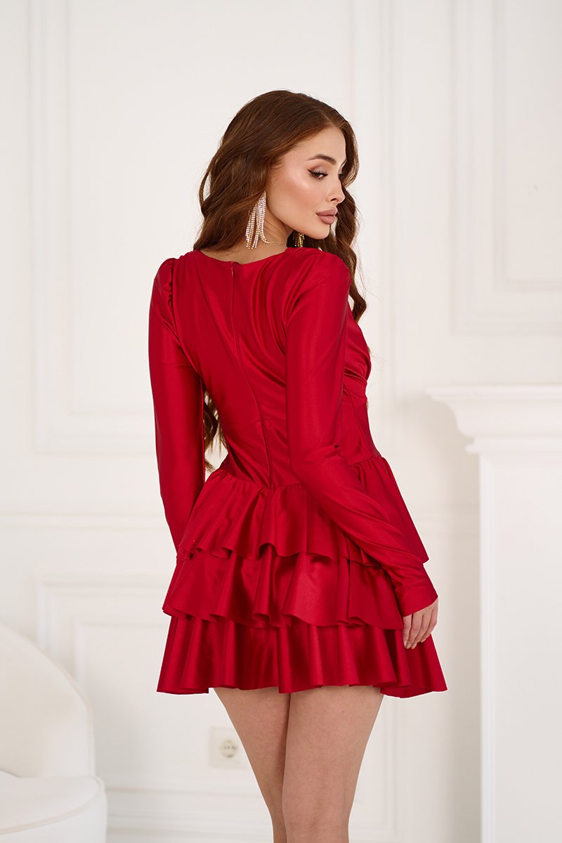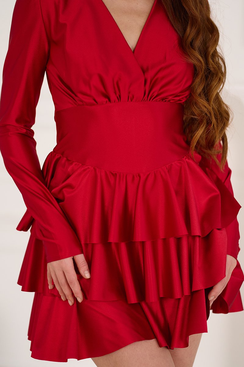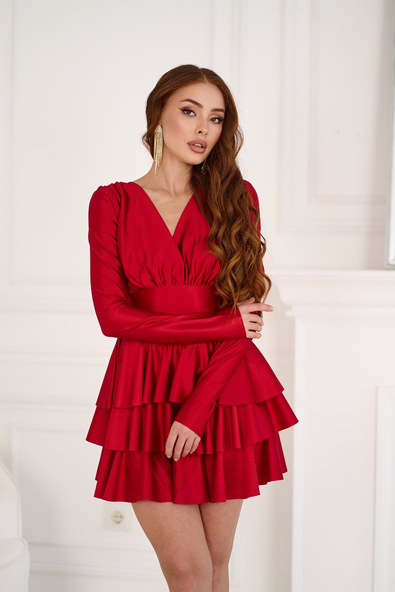 Сукня вирішує одразу декілька задач: робить фігуру візуально стрункішою завдяки широкому поясу, приховує дрібні недоліки в зоні стегон за рахунок багатоярусної спідниці та привертає увагу завдяки глибокому кольору і благородному блиску. Якщо ви шукаєте ефектний образ на святкову вечерю, корпоратив чи романтичне побачення — це ідеальний вибір. Червона Коктейльна сукня міні атласна 25084 допоможе вам відчути себе зіркою вечора та створити незабутнє враження.