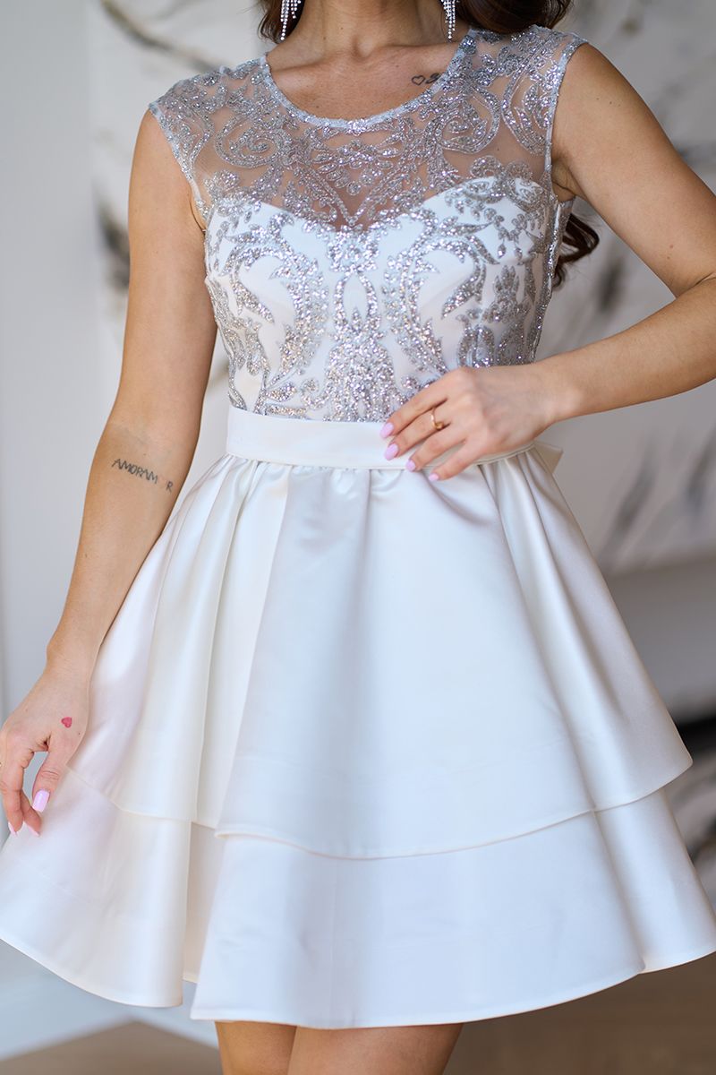 Молочна Коктейльна Сукня Міні Гліттер Два Волана 25019 — це модель для тих, хто хоче виглядати ніжно, святково та дорого. Замовляйте онлайн у Tanita-Romario та обирайте сукню, яка допоможе створити справді незабутній образ.
