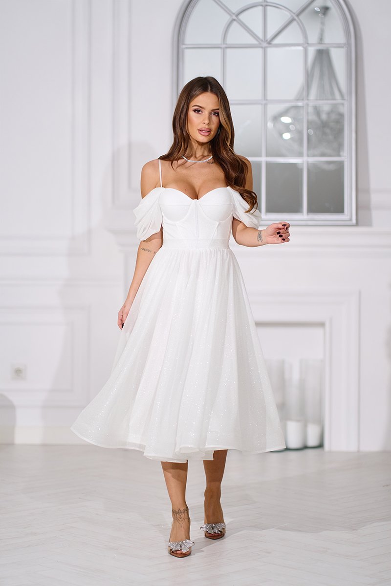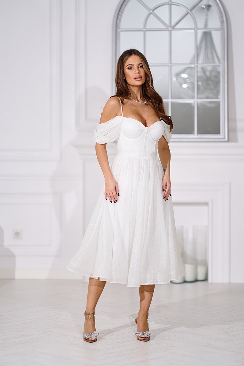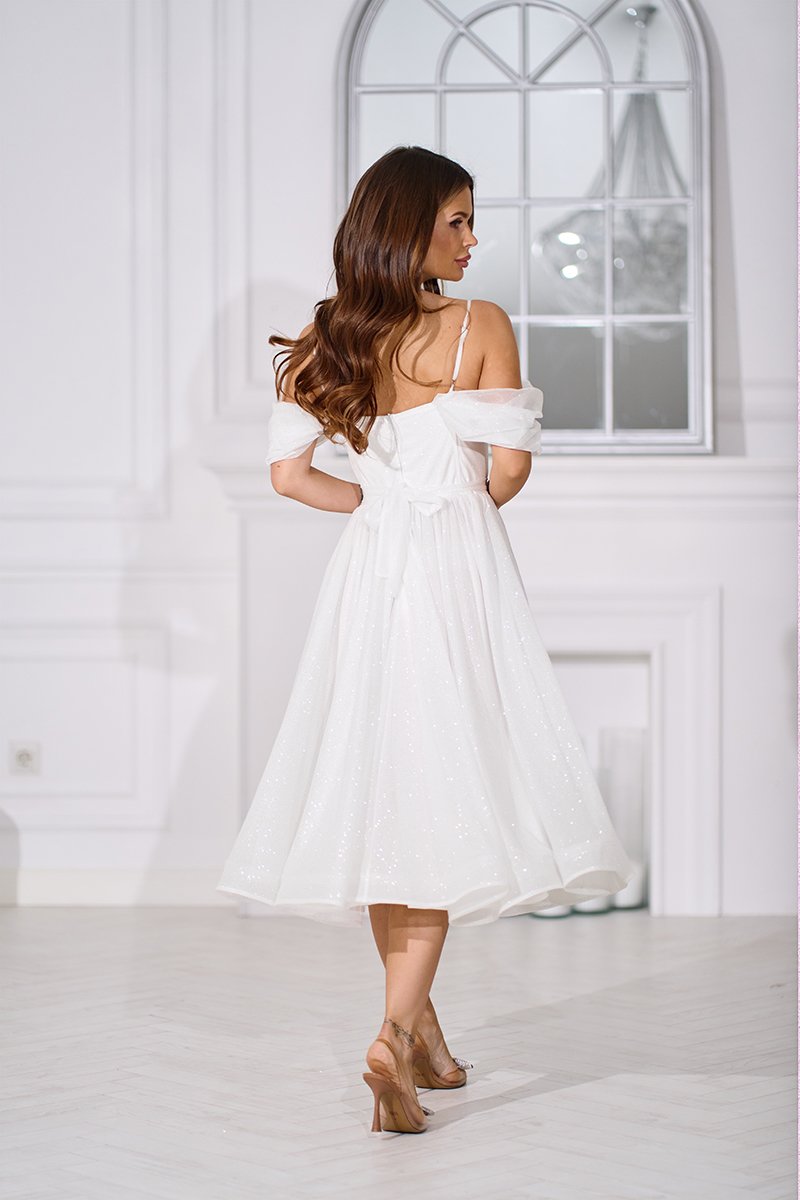 Довжина міді виглядає елегантно та універсально — ця сукня ідеально підходить для розпису, весільної фотосесії, випускного або особливого святкового дня, коли важливо виглядати ніжно, але ефектно.