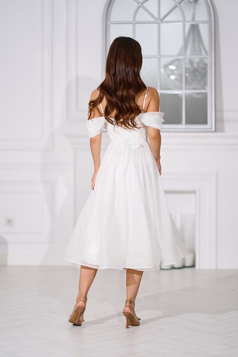 Довжина міді виглядає елегантно та універсально — ця сукня ідеально підходить для розпису, весільної фотосесії, випускного або особливого святкового дня, коли важливо виглядати ніжно, але ефектно.