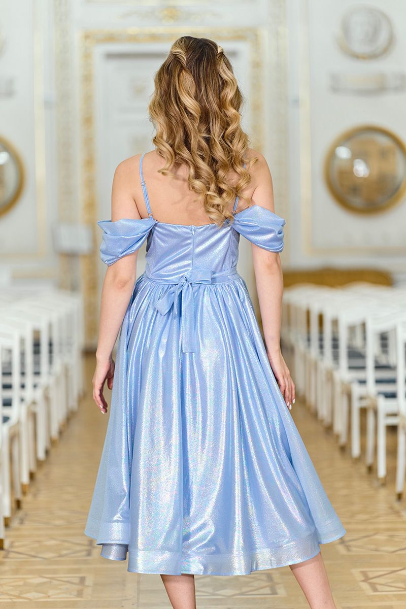 Модель виконана з шифону з делікатним блиском, який створює витончене сяйво при кожному русі. Тканина красиво переливається на світлі, роблячи образ більш динамічним та святковим.