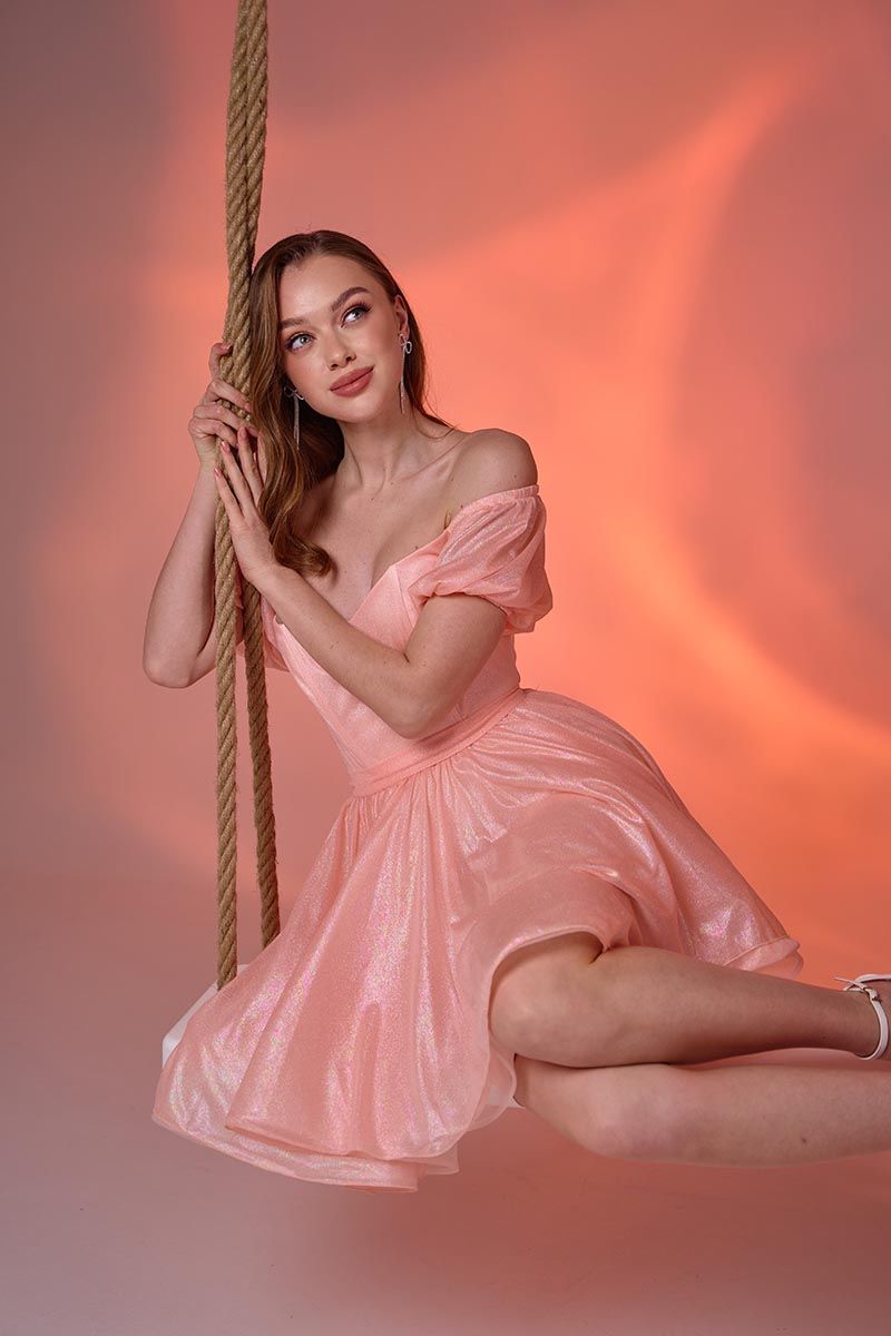 Не пропустіть шанс засліпити світ своїм світлом з Персикова Коктейльна Сукня Перлинний Шифон 24023.
