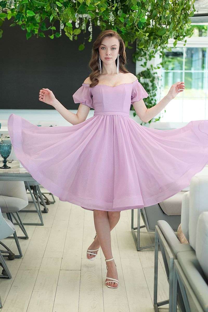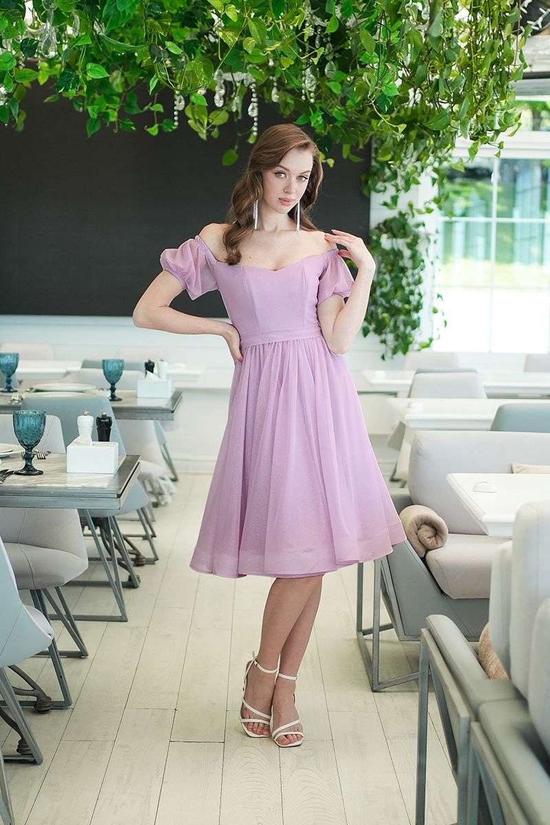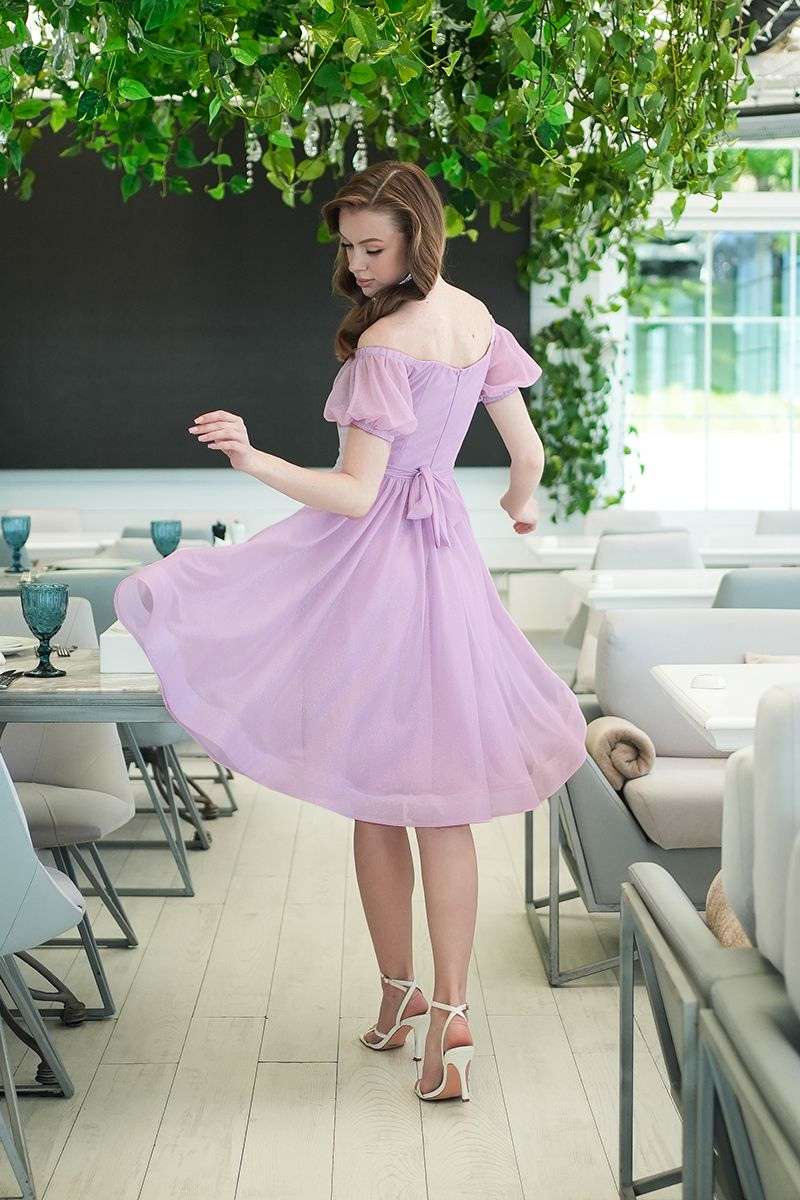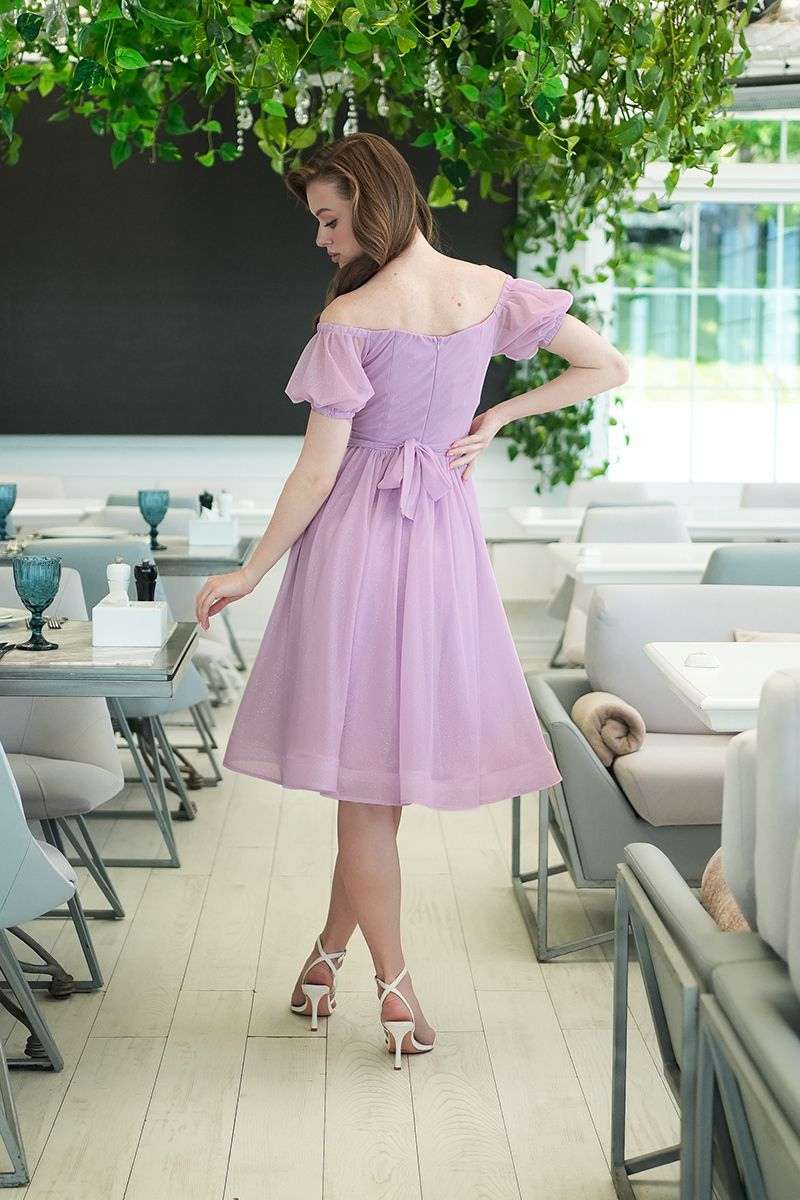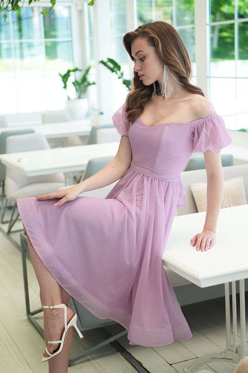 Лавандова Коктейльна Сукня Шифон Блиск Міді 25040 — ідеальний вибір, щоб створити яскравий образ і залишити найніжніші спогади про свято.