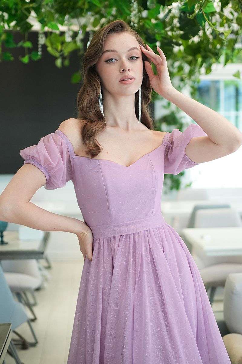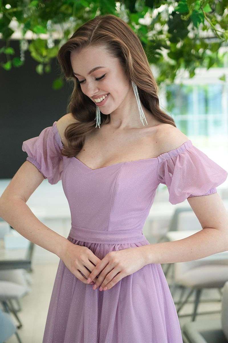 Лавандова Коктейльна Сукня Шифон Блиск Міді 25040 — це справжня мрія для романтичної натури. Ніжний лавандовий відтінок у поєднанні з делікатним блиском створює атмосферу казки та легкості. Тканина шифон з мікроблискітками виблискує при кожному русі, а м’яка трикотажна підкладка під колір додає комфорту. Ліф із корсетними кісточками формує жіночний силует і красиво підтримує бюст. Повітряні рукави-фонарики, присобрані на резинку, відкривають лінію плечей, а пояс, що йде в комплекті, вдало підкреслює талію. Потайна блискавка на спинці забезпечує зручність і акуратний вигляд.