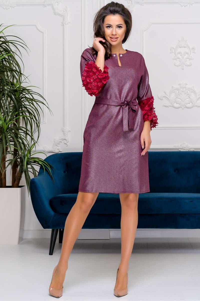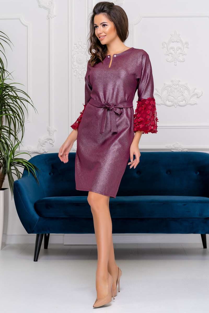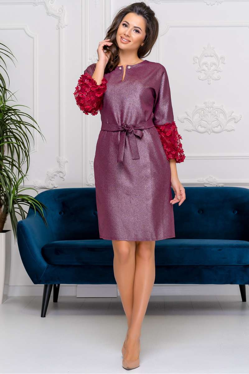 Замовляйте Бордова Коктейльна сукня трапеція блиск 9177 онлайн у магазині Tanita-Romario вже зараз та створюйте неповторні образи для своїх свят!