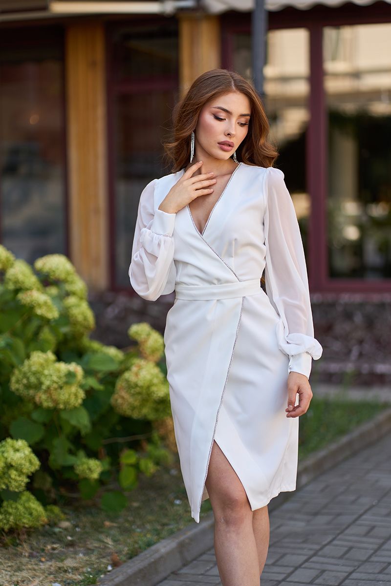 Якщо ви шукали щось особливе, але не занадто кричуще — ця модель стане саме тим “ідеальним балансом”. Молочна Коктейльна сукня з шифоновими рукавами стрази 25073 — це той варіант, який підкреслить вашу жіночність і зробить кожну появу в ній незабутньою.