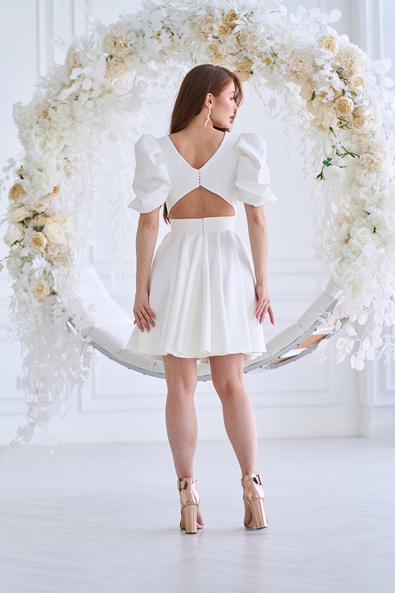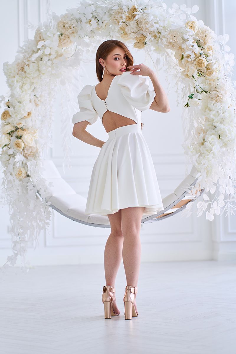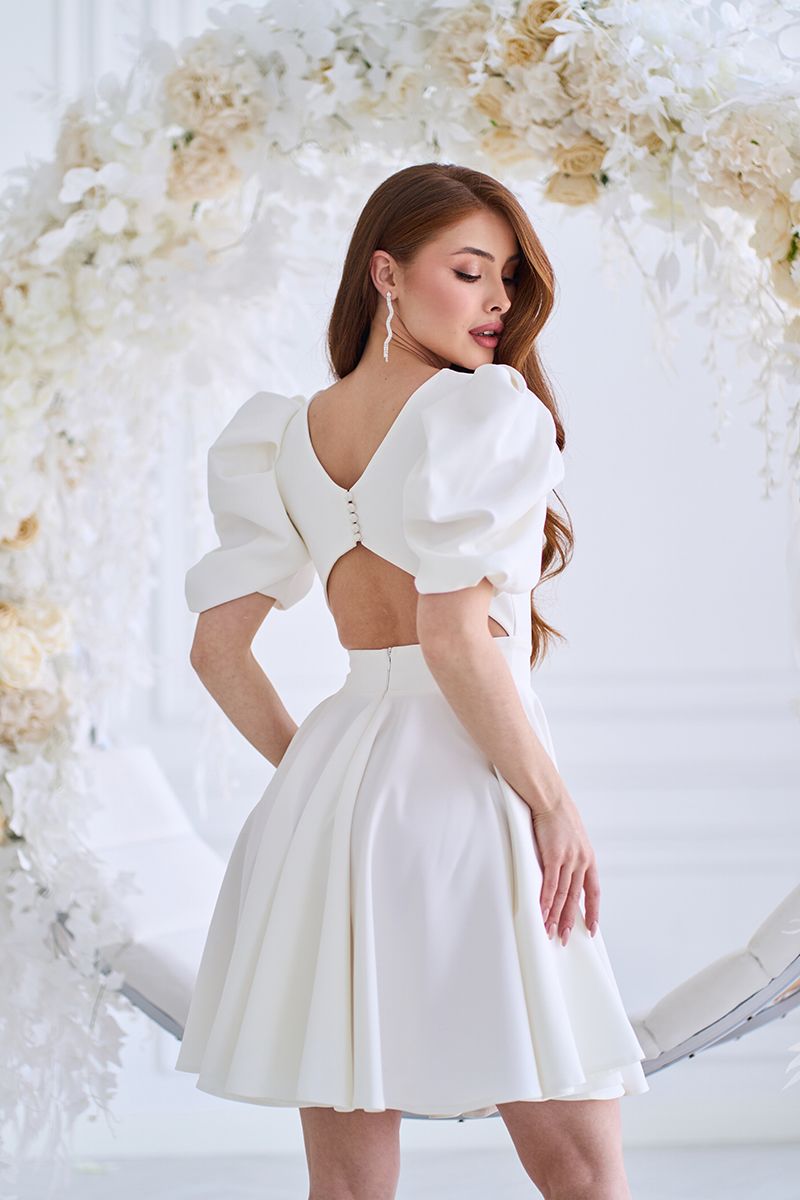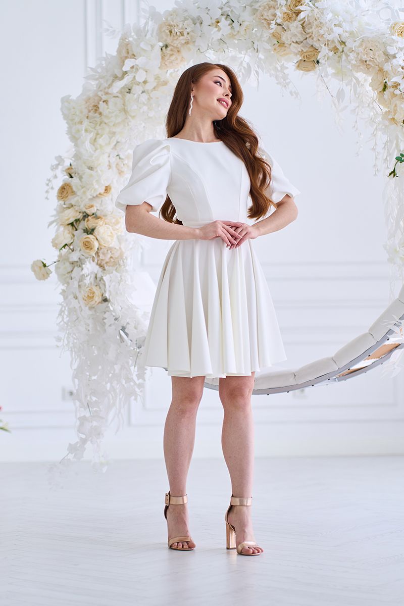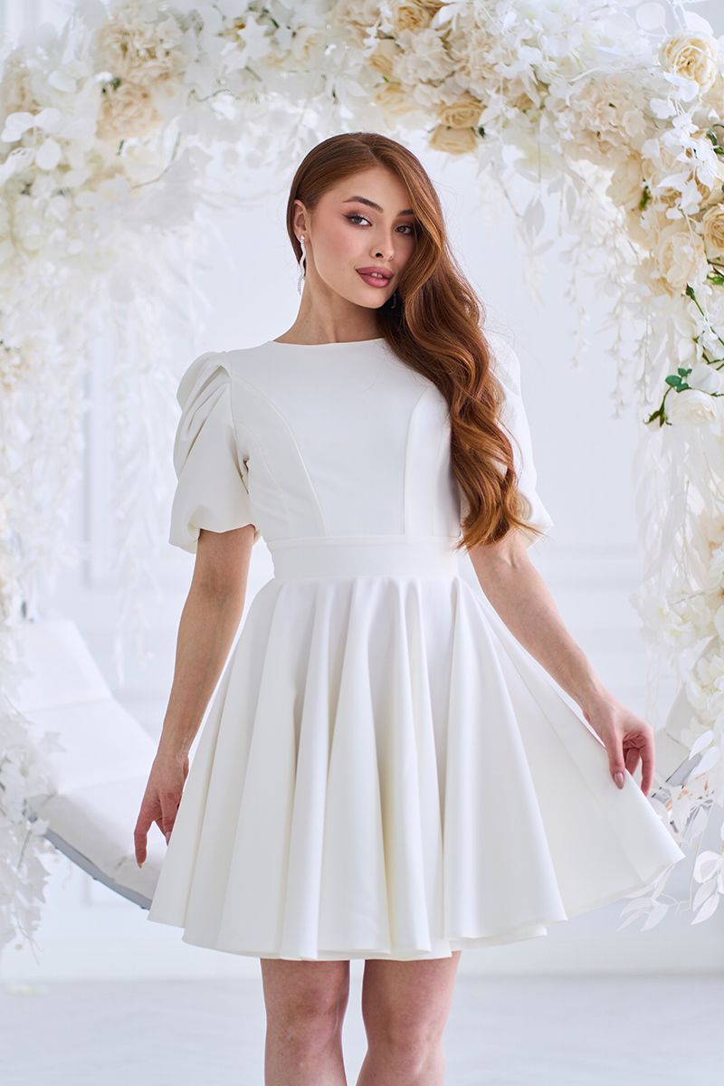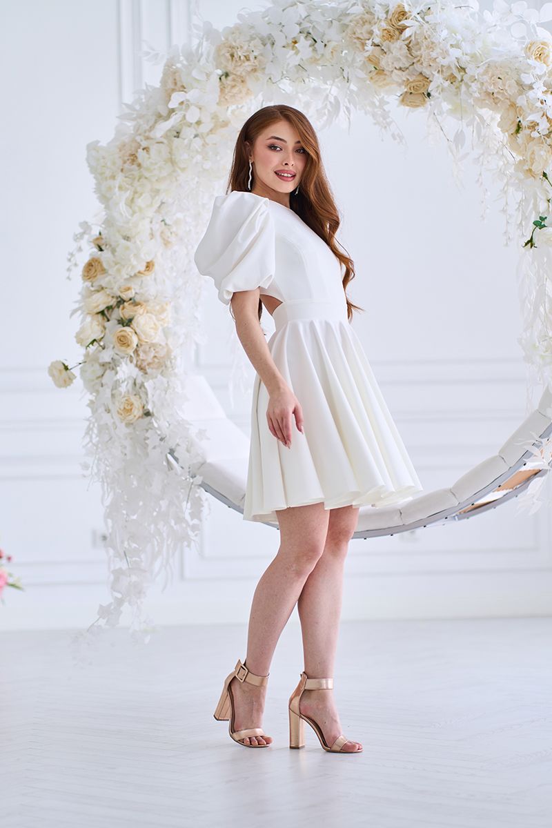 Так, молочний відтінок і елегантний крій роблять її ідеальним вибором для розпису, камерного весілля або святкової фотосесії.