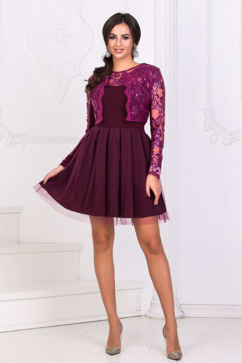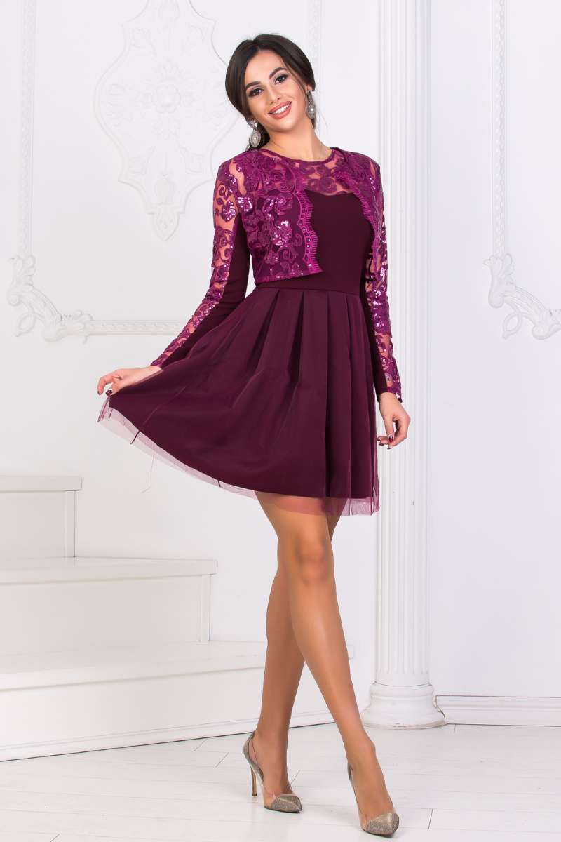 Яскрава коктейльна сукня виконана з креп дайвінгу.