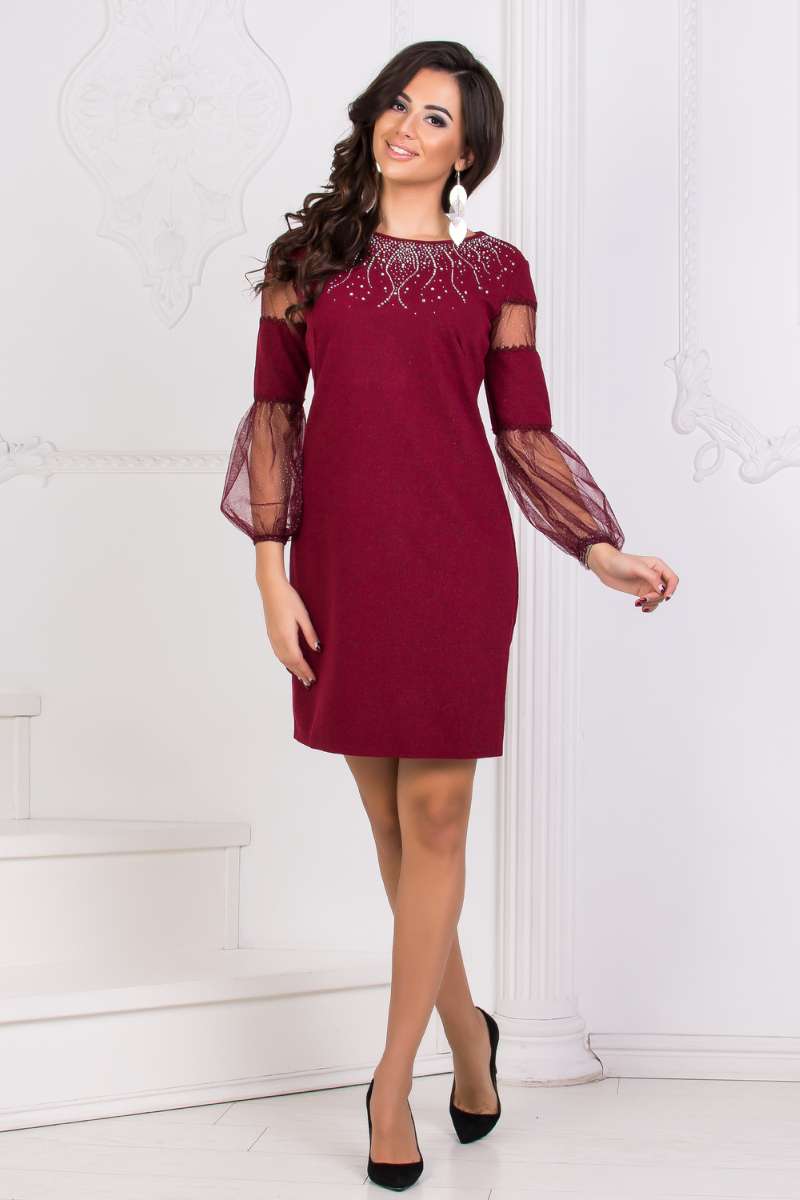 1 180 ₴Коктейльна Сукня Мереживний Гіпюр 20053 Бордо
