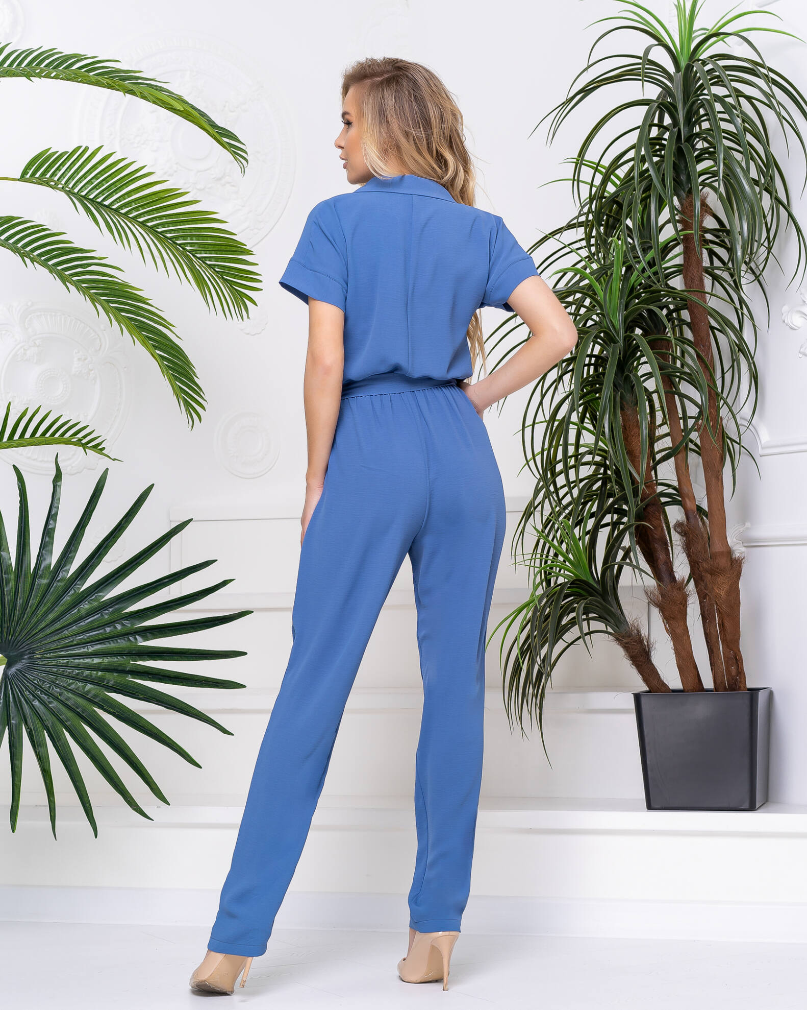 Індіго Комбінезон Віскоза Креш Двобортний 20089 можна поєднувати як зі спортивним взуттям, так і з класичними варіантами туфель або босоніжок на підборах