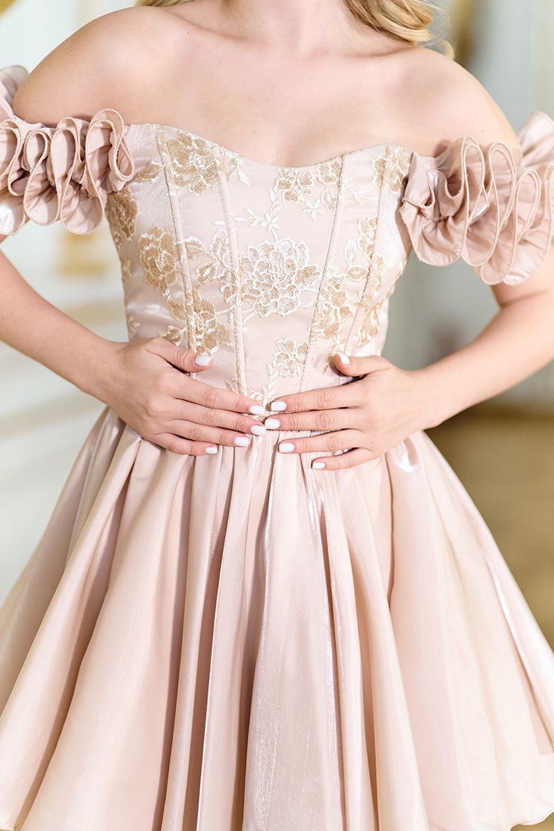 Кремова корсетна міні сукня з вишивкою та відкритими плечима 26008 — це поєднання ніжності, розкоші та сучасної жіночності. Вона створена для тих моментів, коли хочеться виглядати особливо — легко, елегантно і водночас ефектно.
