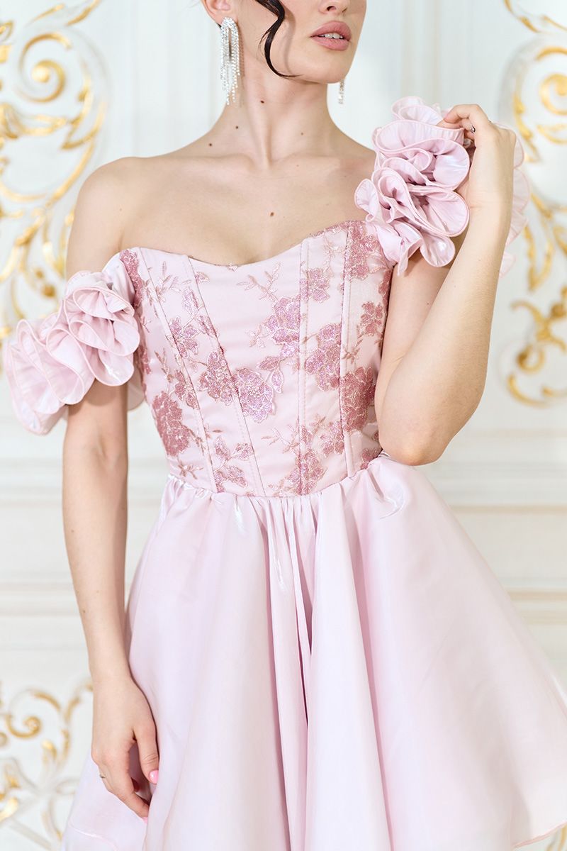 Пудрова корсетна міні сукня з вишивкою та відкритими плечима 26008 — це ніжний акцент у вашому гардеробі, який гарантовано приверне увагу. Напишіть нам, щоб отримати розмірну сітку та підібрати ідеальну посадку.