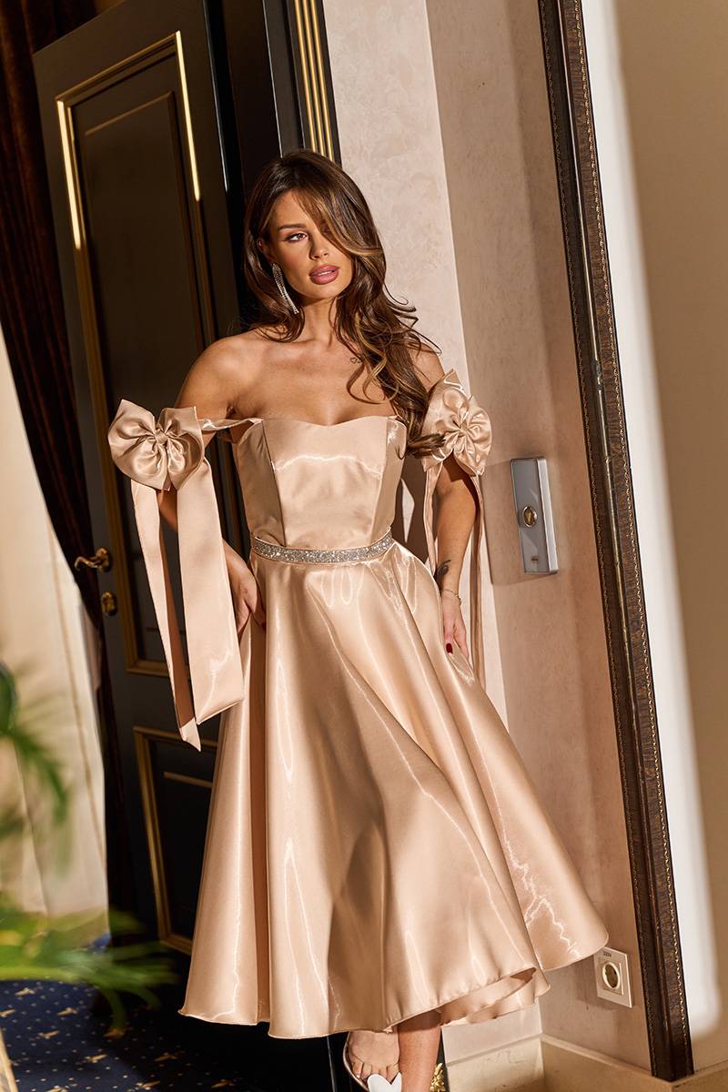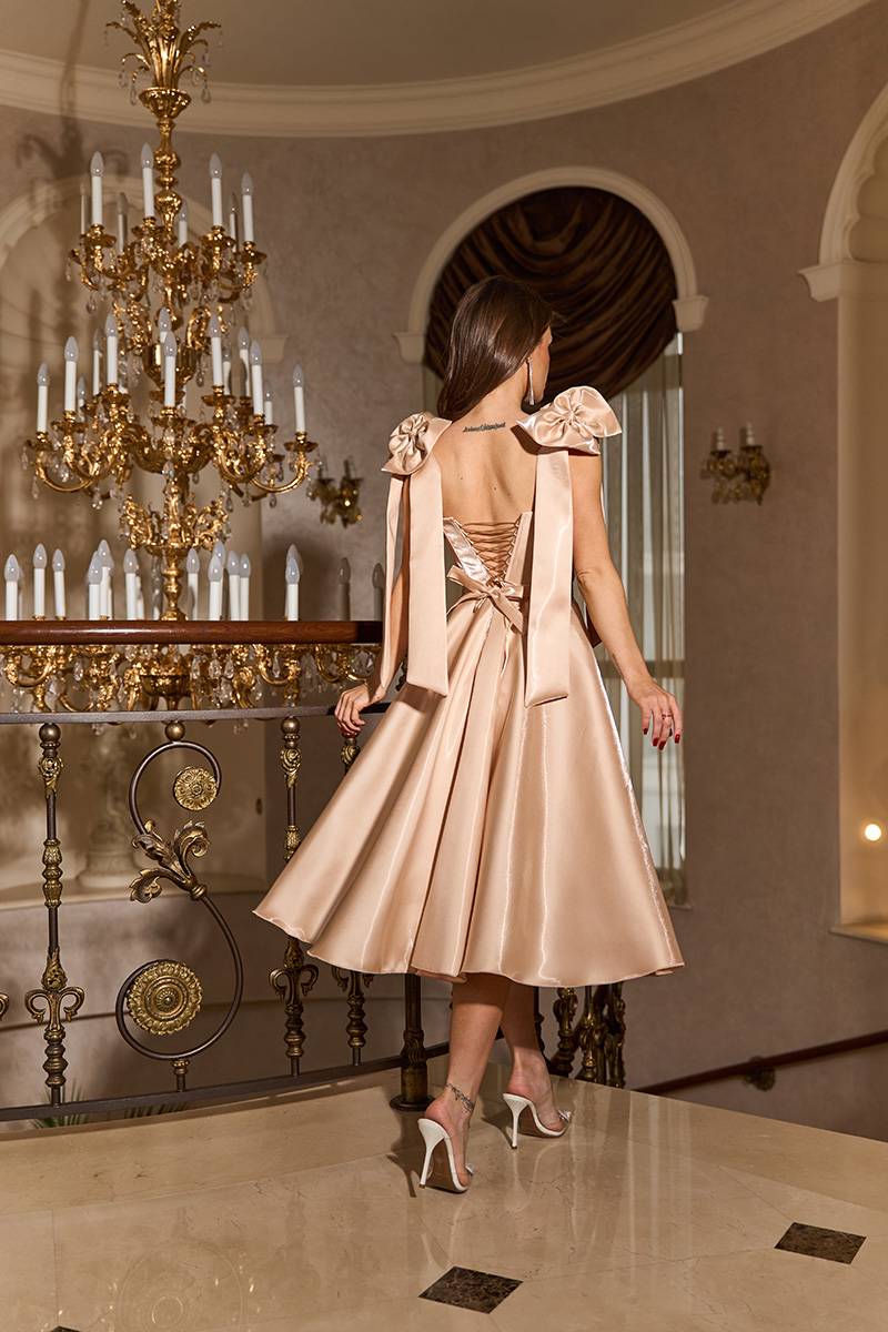 Бежева корсетна сукня з бантами на плечах 26004 — це втілення стриманої розкоші, витонченості та бездоганного смаку. Благородний бежевий відтінок виглядає дорого, підкреслює природну красу та створює елегантний образ для особливих подій.