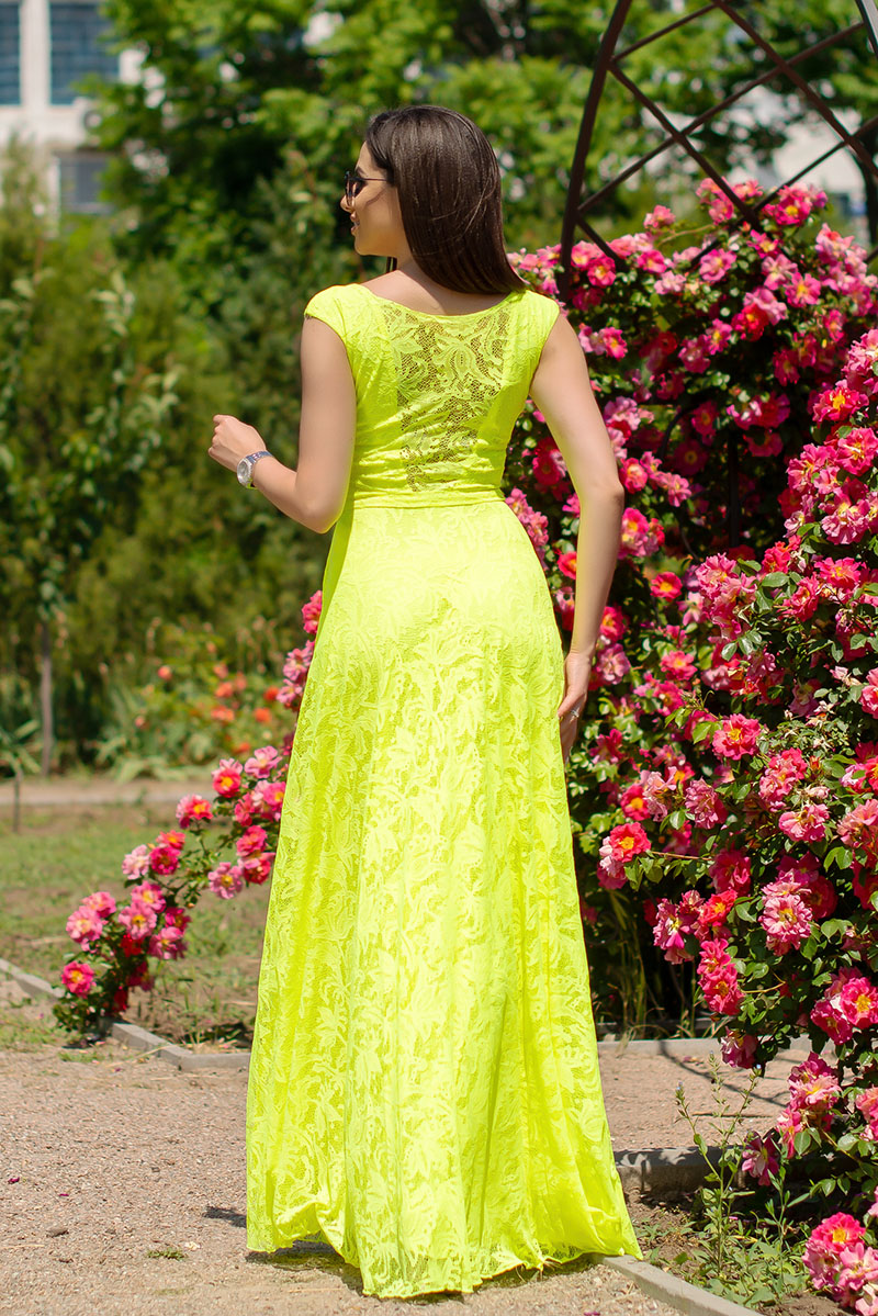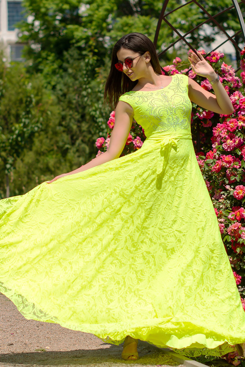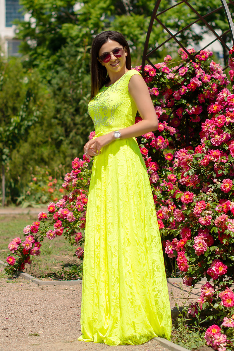 Жовта Літня Сукня Гіпюр Максі 6110 продається зі знижкою в останніх розмірах S та М.