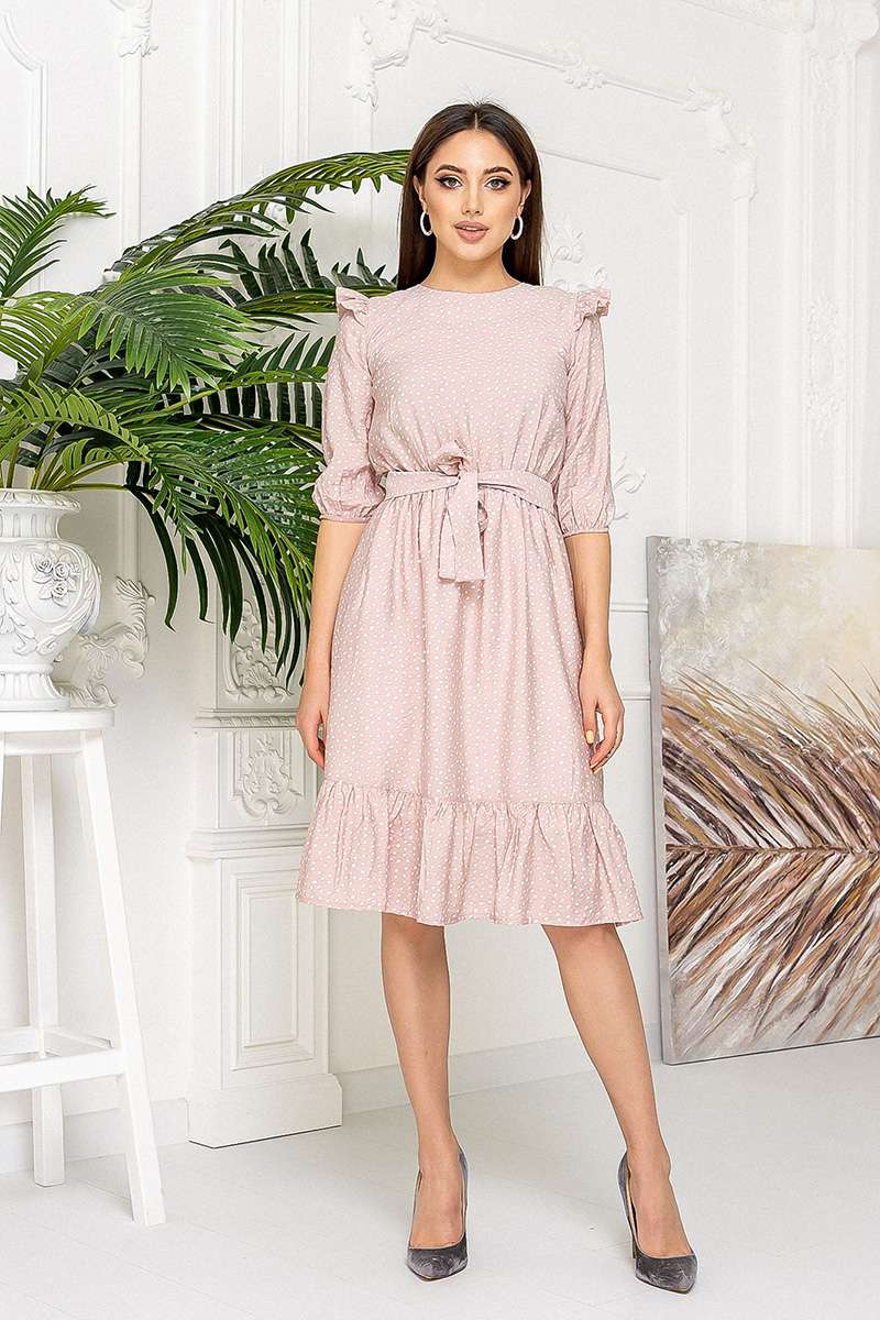 Опис товару: Пудра Літня Сукня Жатий Льон 21026 стане улюбленим елементом вашого літнього гардероба. Легка тканина з дрібним горошком та трикотажною підкладкою створює витончений і романтичний образ. Завдяки поясу, який додається у комплекті, сукня підкреслює талію, а зручна застібка на ґудзику на спині додає елегантності. Доступна в розмірах S – XL.