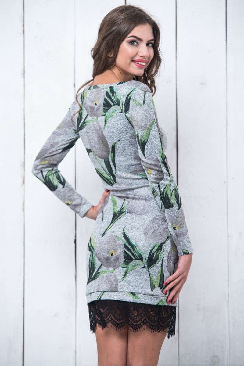 Сіра Повсякденна сукня ангора трикотаж 6214 – ідеальний вибір для створення стильного та комфортного образу. Виконана з м’якої та теплої тканини ангора трикотаж, прикрашена ефектним крупним квітковим принтом, що додає образу жіночності та вишуканості. Оригінальності моделі надає низ сукні, декорований елегантним французьким кружевом. Доступна в універсальних розмірах S, M, L, вона гармонійно підкреслює силует та дарує відчуття затишку протягом усього дня.
