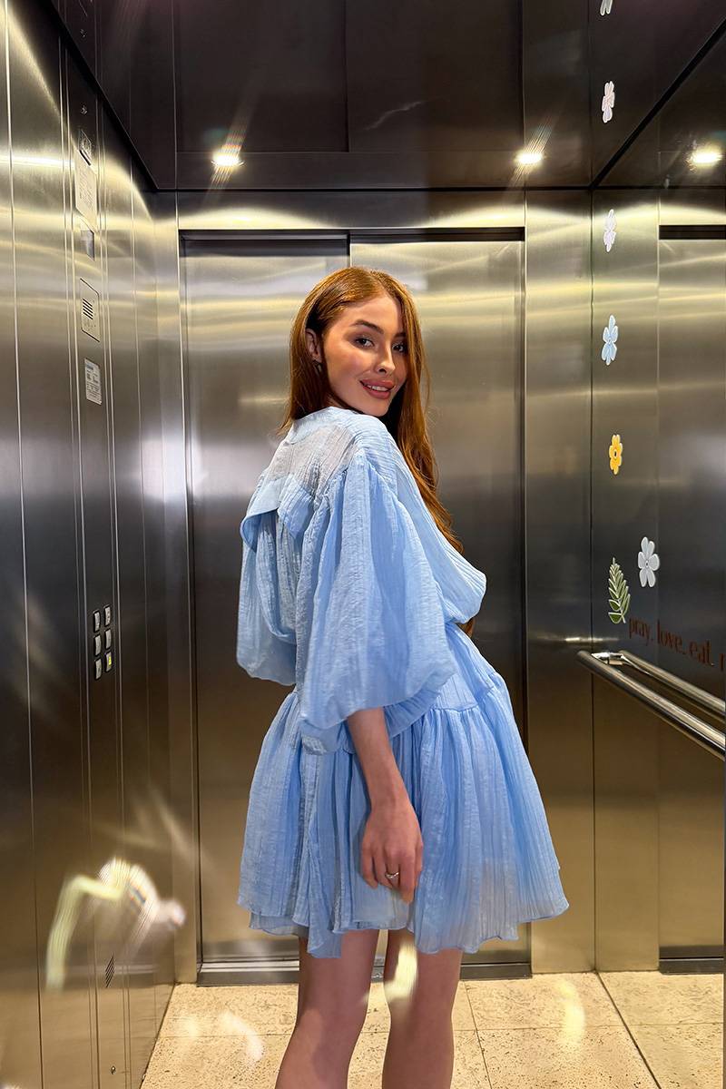 Ця блакитна сукня комбінація з повітряним верхом ідеально підходить для прогулянок містом, відпустки, побачень або літніх заходів, коли хочеться виглядати свіжо, жіночно та природно.