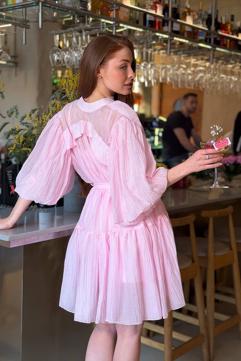 Питання та відповіді про Рожева Сукня комбінація з повітряним верхом 26021