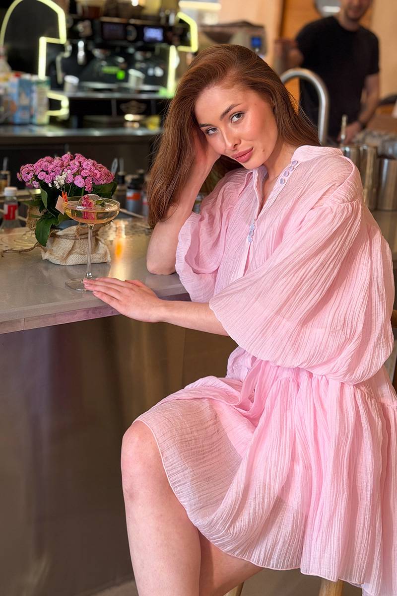 Ця рожева сукня комбінація з повітряним верхом ідеально підходить для побачень, прогулянок, святкових подій або відпочинку, коли хочеться виглядати ніжно, стильно та привабливо.