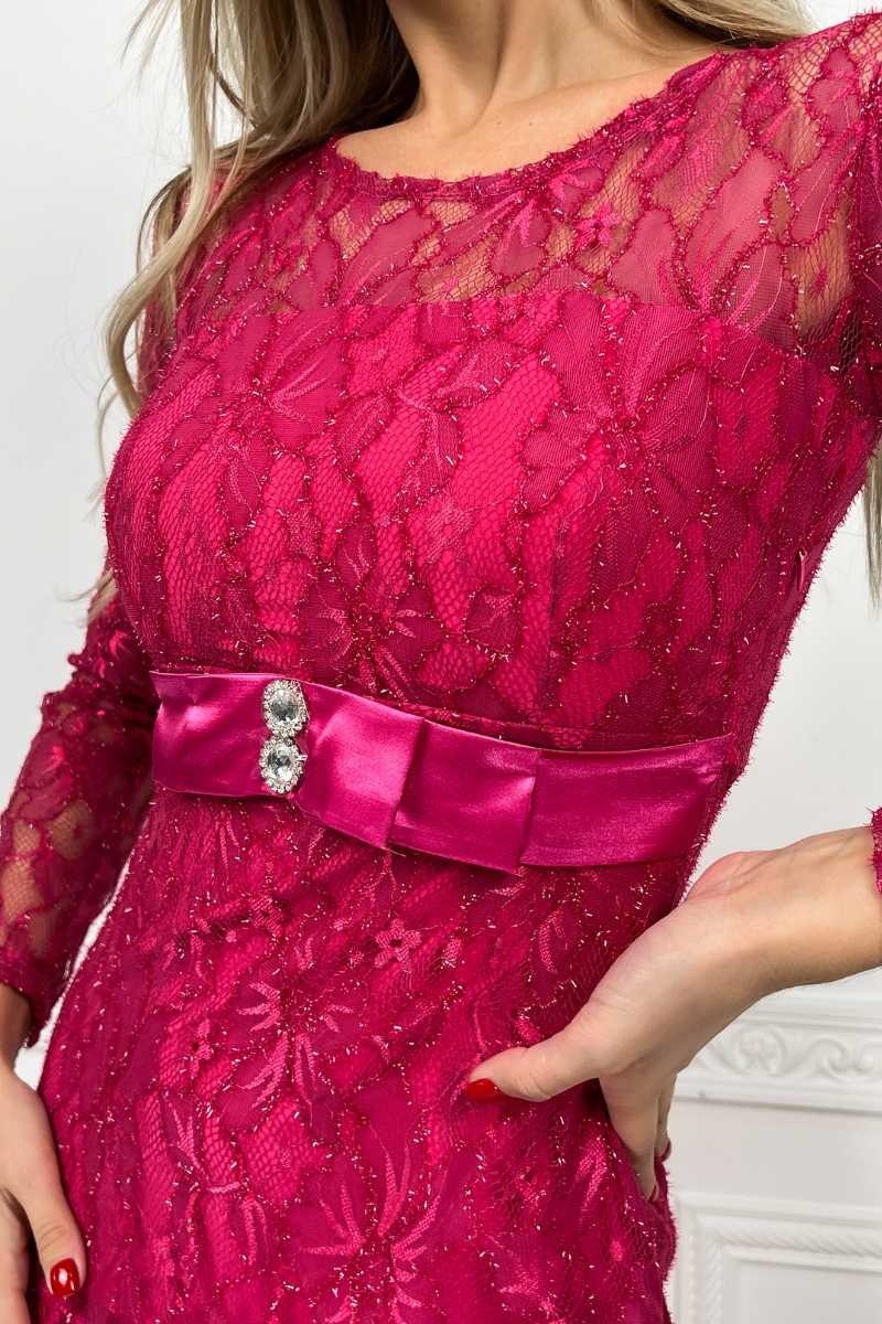 Спереду на талії вшита атласна вставка з блискучим декором, що робить акцент на талії.