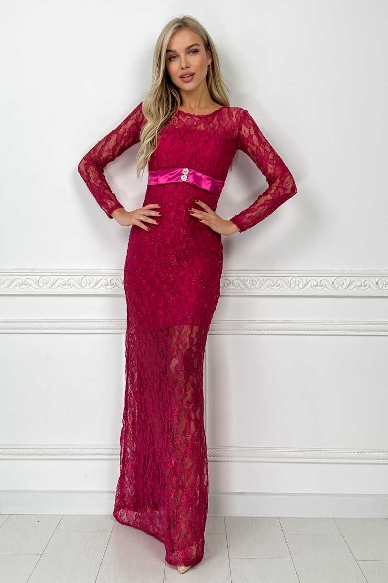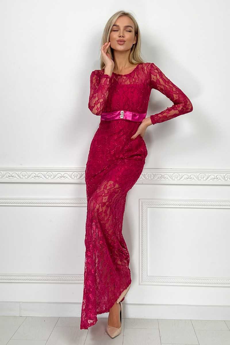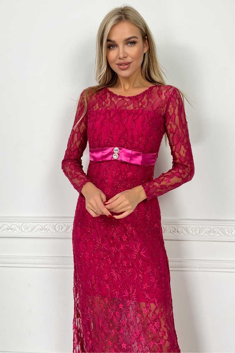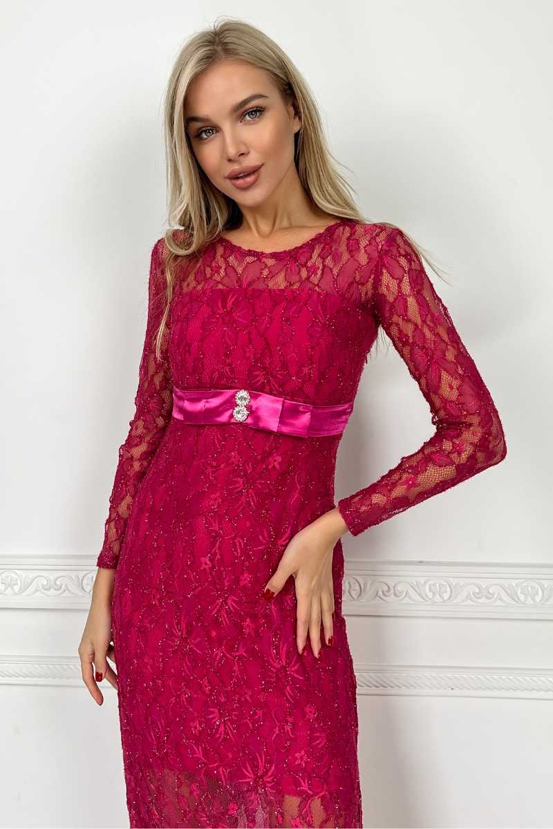 Вишукане вечірнє плаття виконане із ніжного напівпрозорого гіпюру, атласу та має підкладку кристал.