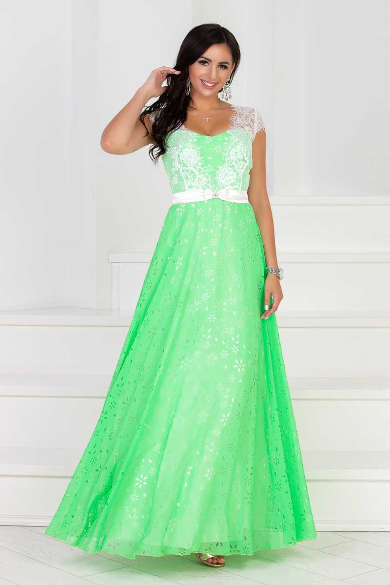 трикотажну підкладку. Глибоке декольте, мереживні плечі, тонкий пояс на талії