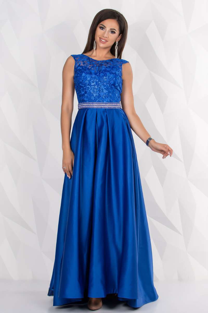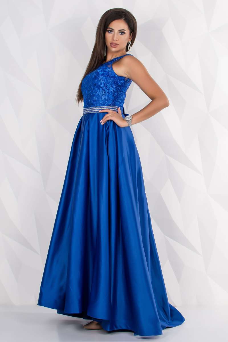 Яскрава вечірня сукня виконана з прокатного атласу.