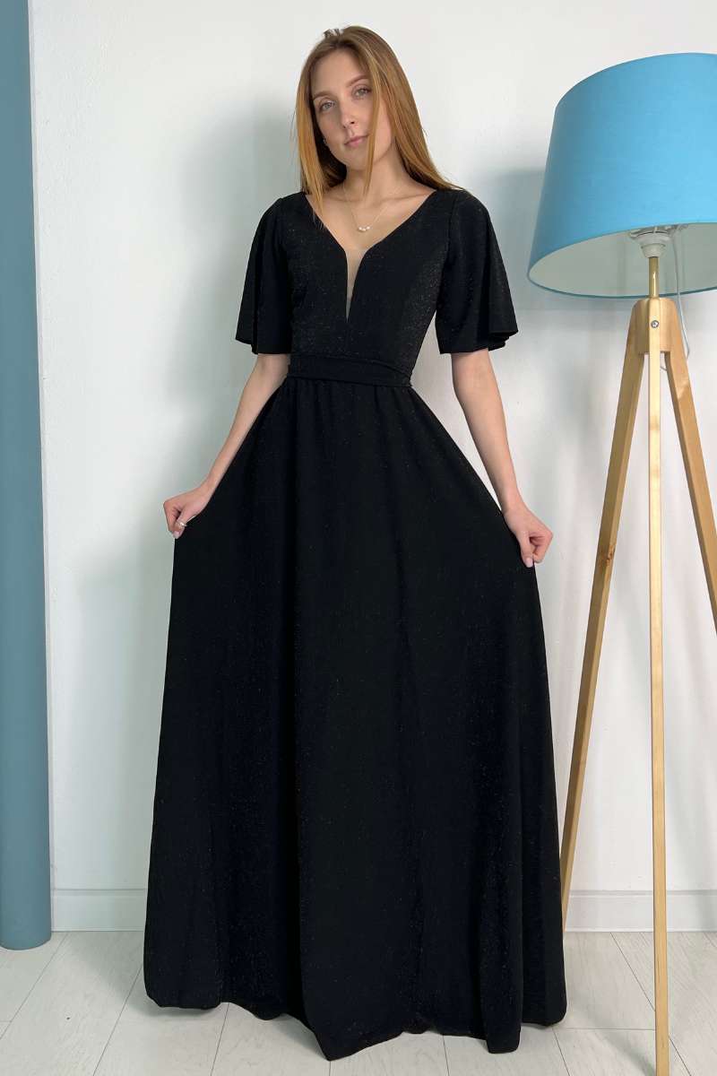 Довжина сукні максі, нижня частина сукні струмує великими хвилями за рахунок свого крою.