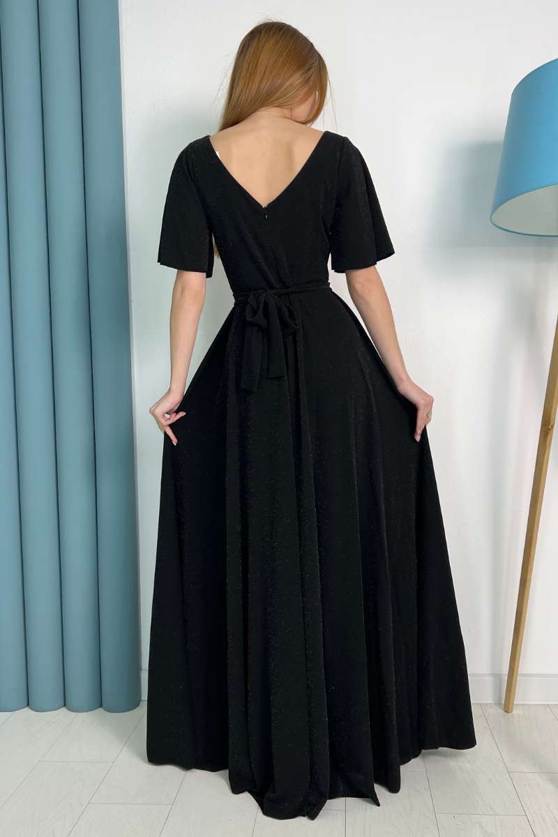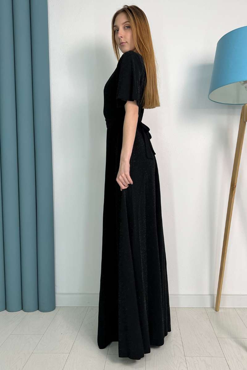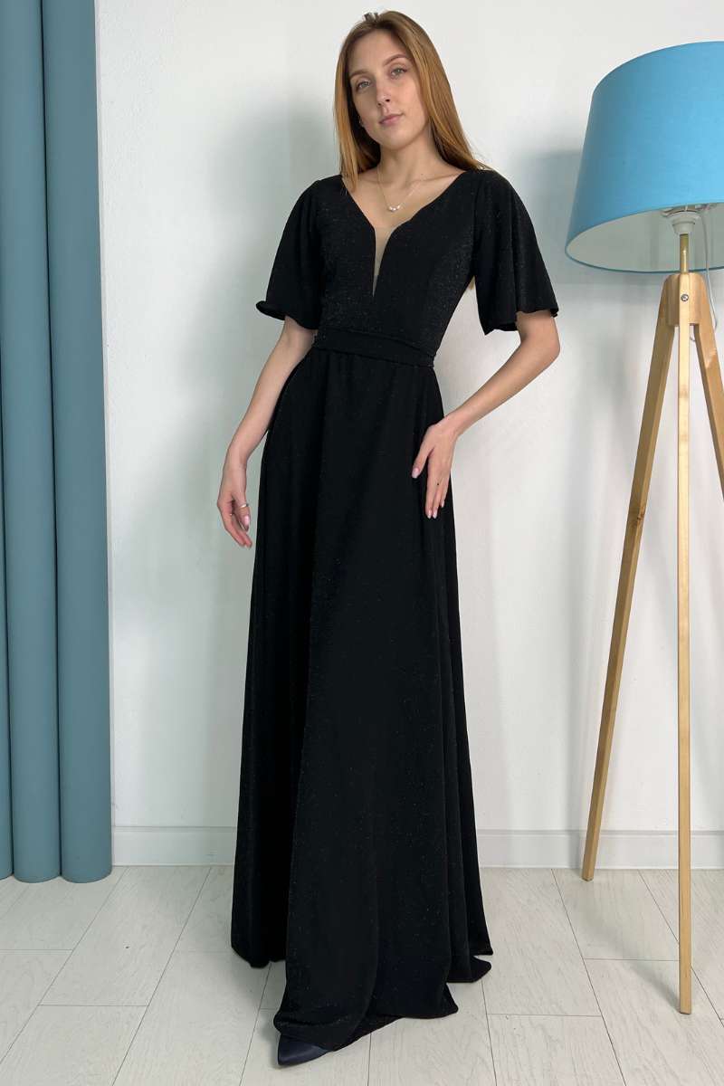 Цікава вечірня сукня виконана з трикотажної тканини з люрексом.