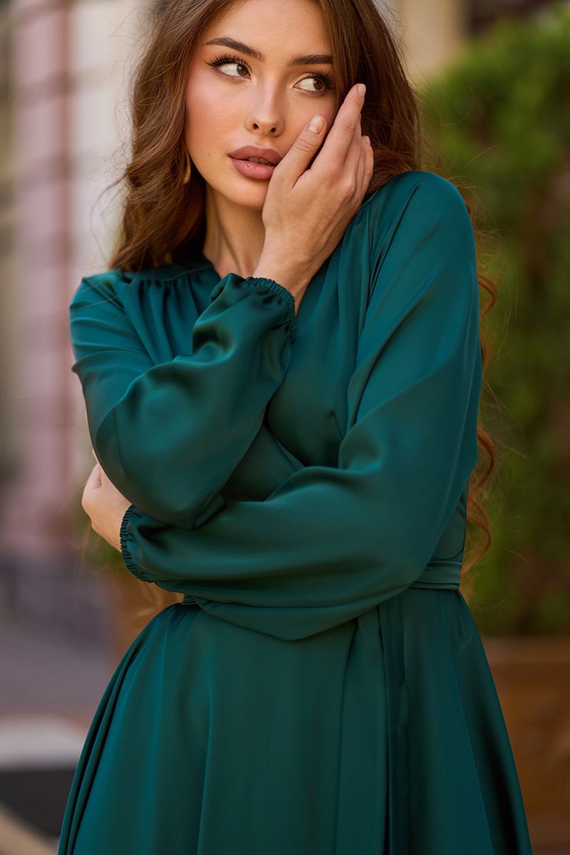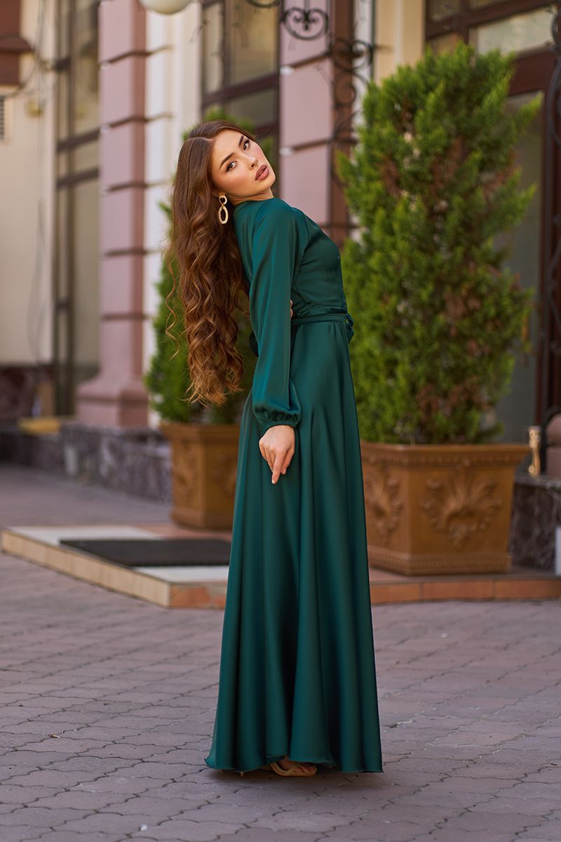 Ця сукня — must-have для урочистих вечорів, весільних свят, романтичних побачень або фотосесій. Зелений колір ідеально поєднується як зі світлою шкірою, так і з засмагою. Рекомендуємо доповнити образ взуттям на підборах та мінімалістичними прикрасами — золото або перли стануть безпрограшним вибором. Клатч із атласу або велюру завершить вечірній аутфіт.